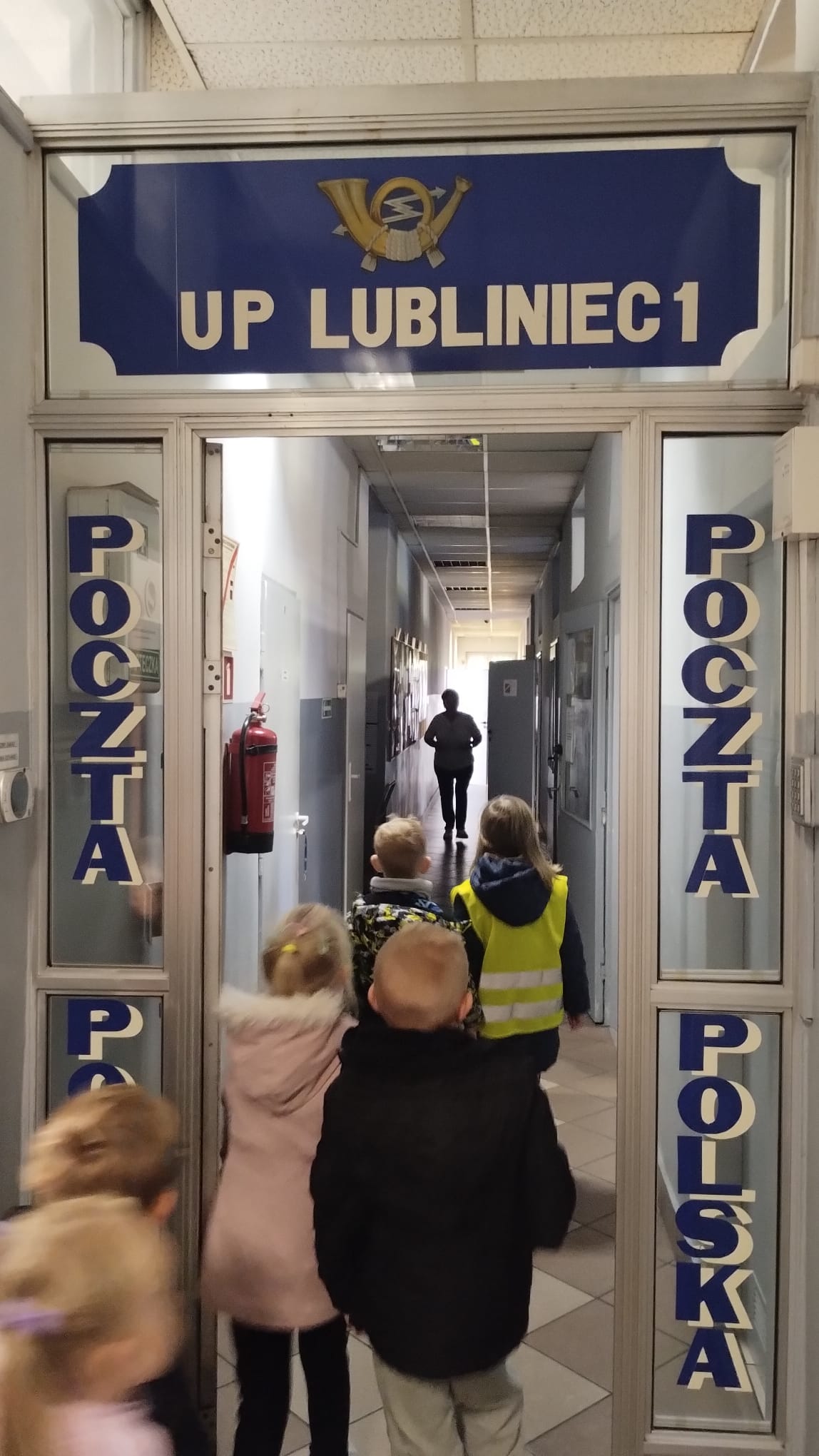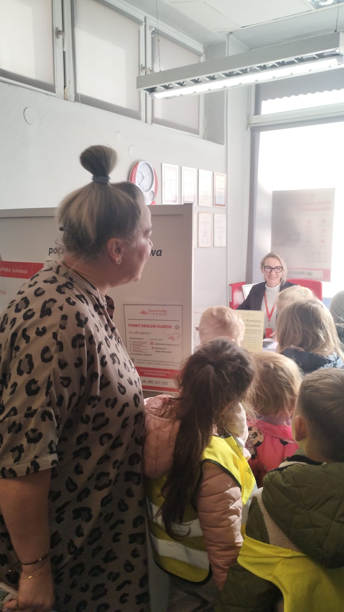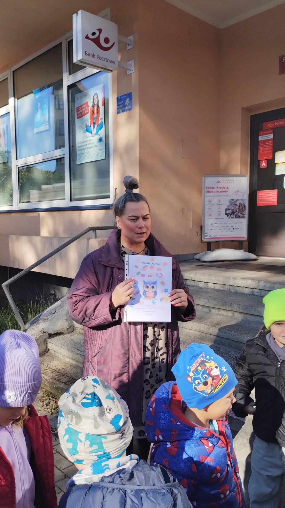 20.10.2025 r. dzieci z grupy „Mądre Sowy” z okazji Dnia Poczty Polskiej wybrały się na wycieczkę do Urzędu Poczty Polskiej w Lublińcu. Miały okazję przyjrzeć się z bliska pracy urzędników pocztowych oraz poznać zakres usług wykonywanych na poczcie. Bardzo serdecznie przywitały nas Panie, które troskliwie się nami zajęły. Najpierw opowiedziały historię poczty, jak wyglądało to kiedyś, a jak wygląda teraz. Następnie zwiedziliśmy hol poczty, a także stanowiska, przy których obsługuje się klientów.