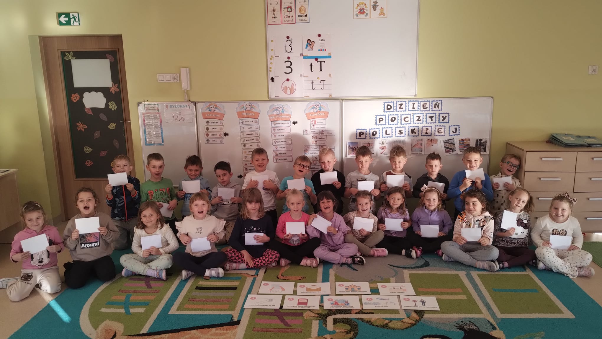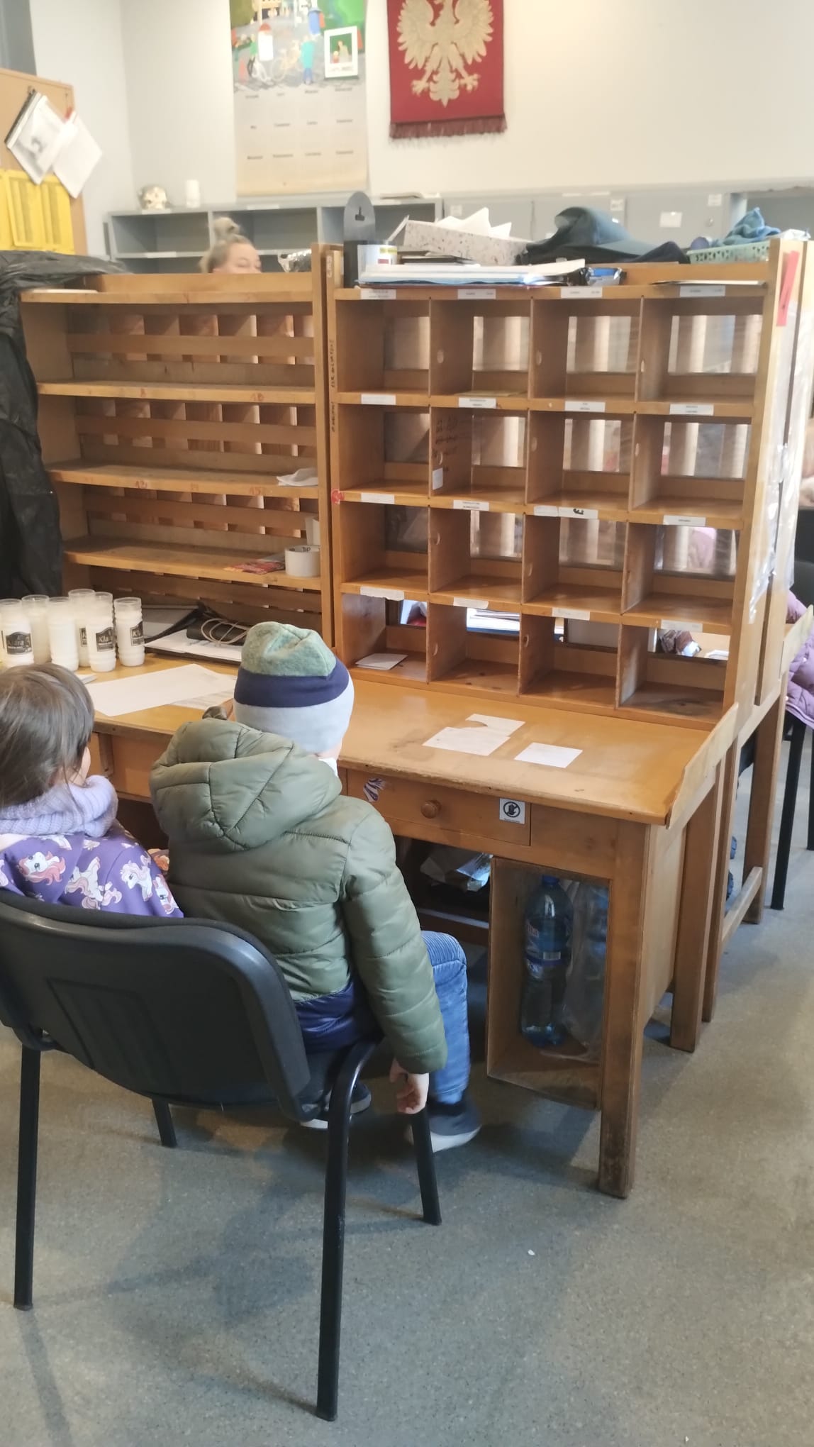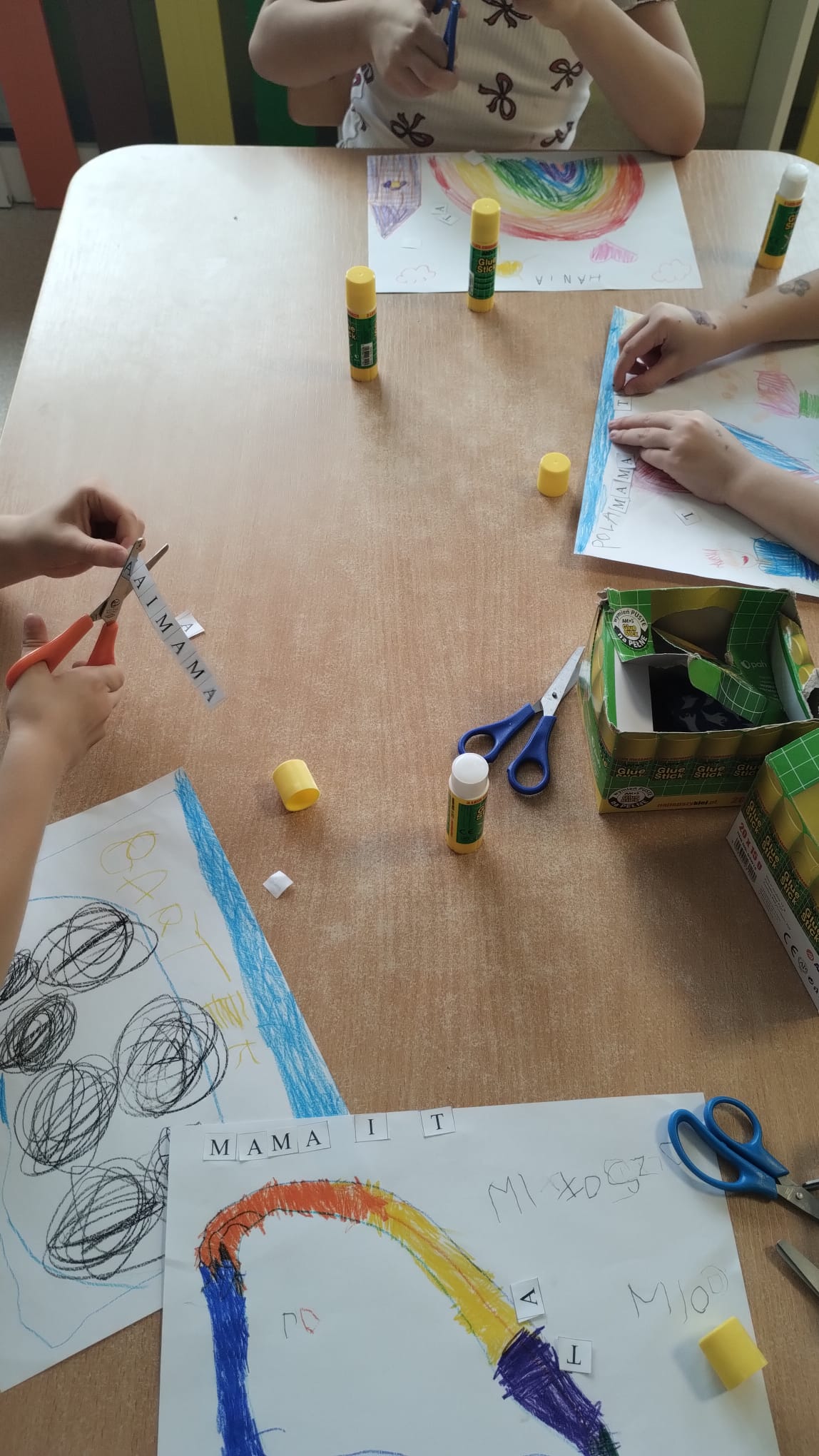 Kilka dni przed planowaną wizytą dzieci przygotowywały się do niej. Za zadanie „domowe” miały powtórzyć sobie własny adres zamieszania. W sali przygotowały piękne ilustracje, na które z rozsypanki literowej nakleiły napisy „MAMA I TATA”, powstałe listy włożyły do koperty i podały pani Karinie adres, aby zaadresować przesyłkę dla rodziców.