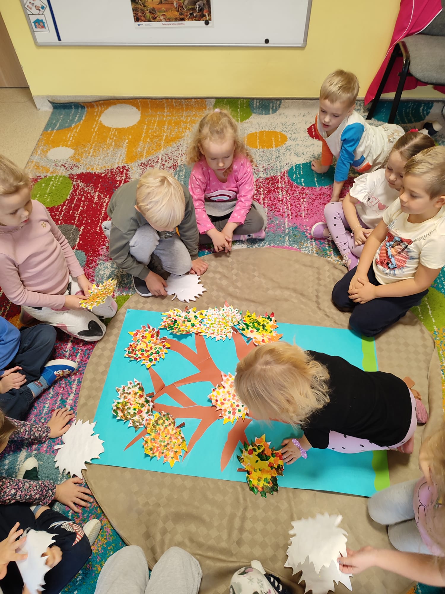 W piątek 10 października grupa „Słoneczka” włączyła się w obchody Światowego Dnia Drzewa. To ważne święto przypomina nam o znaczeniu drzew dla całej naszej planety. W tym dniu odbyły się zajęcia związane z tematyką drzew. Dzieci poznały różne rodzaje drzew, ich budowę, etapy wzrastania oraz zmienność wyglądu podczas pór roku. Przedszkolaki wykonały również wspólną pracę plastyczną „Jesienne drzewko”.