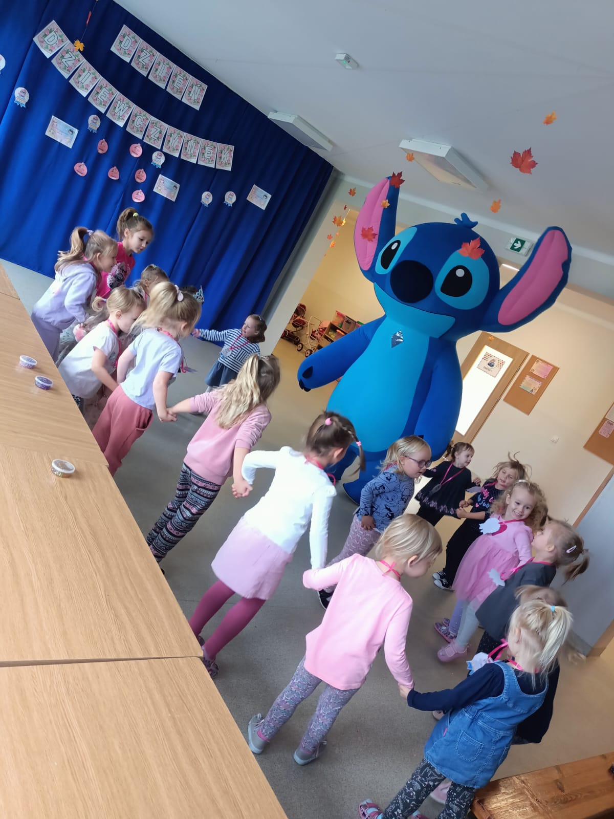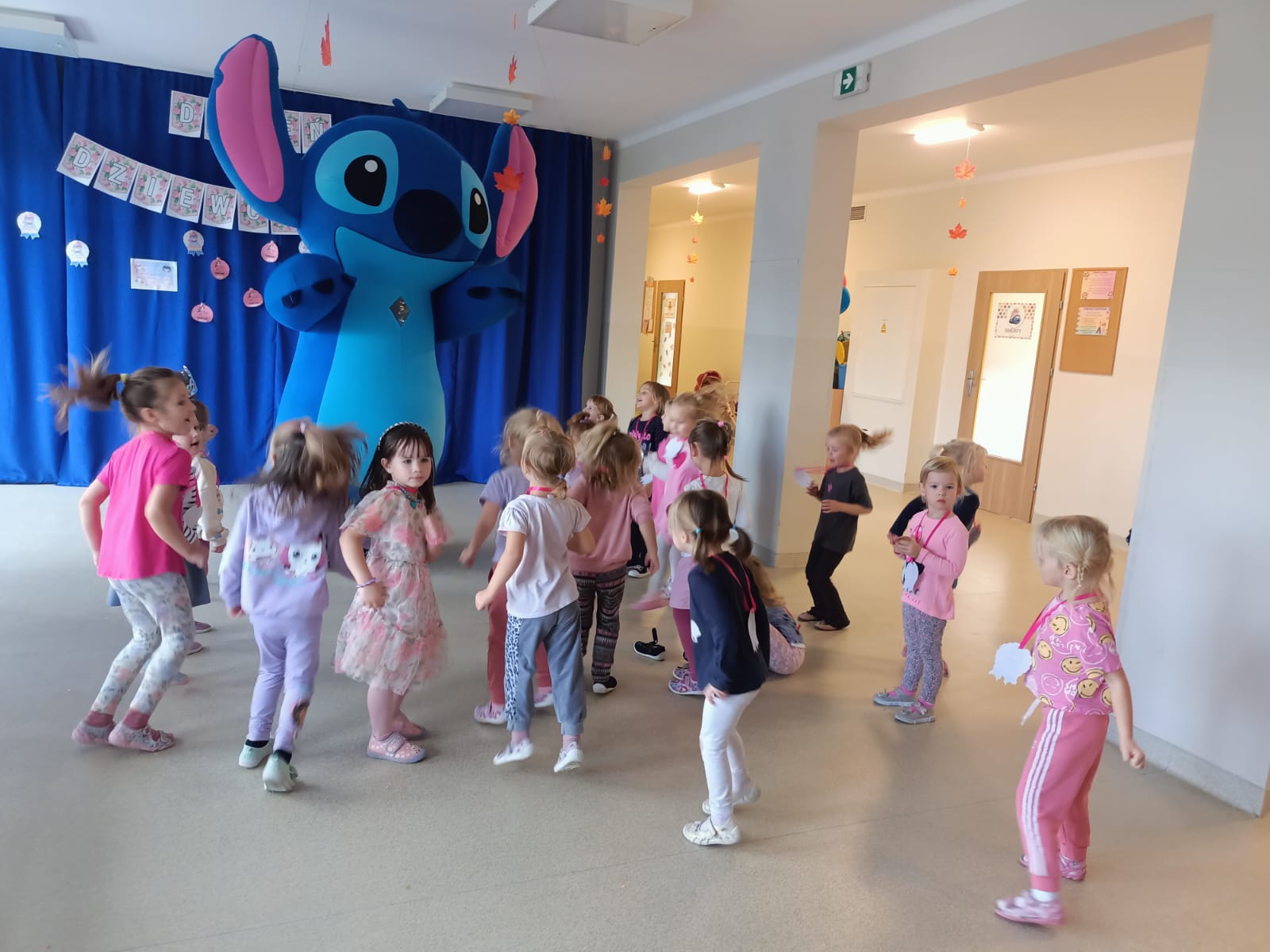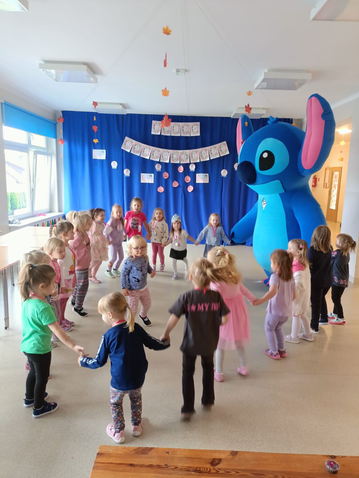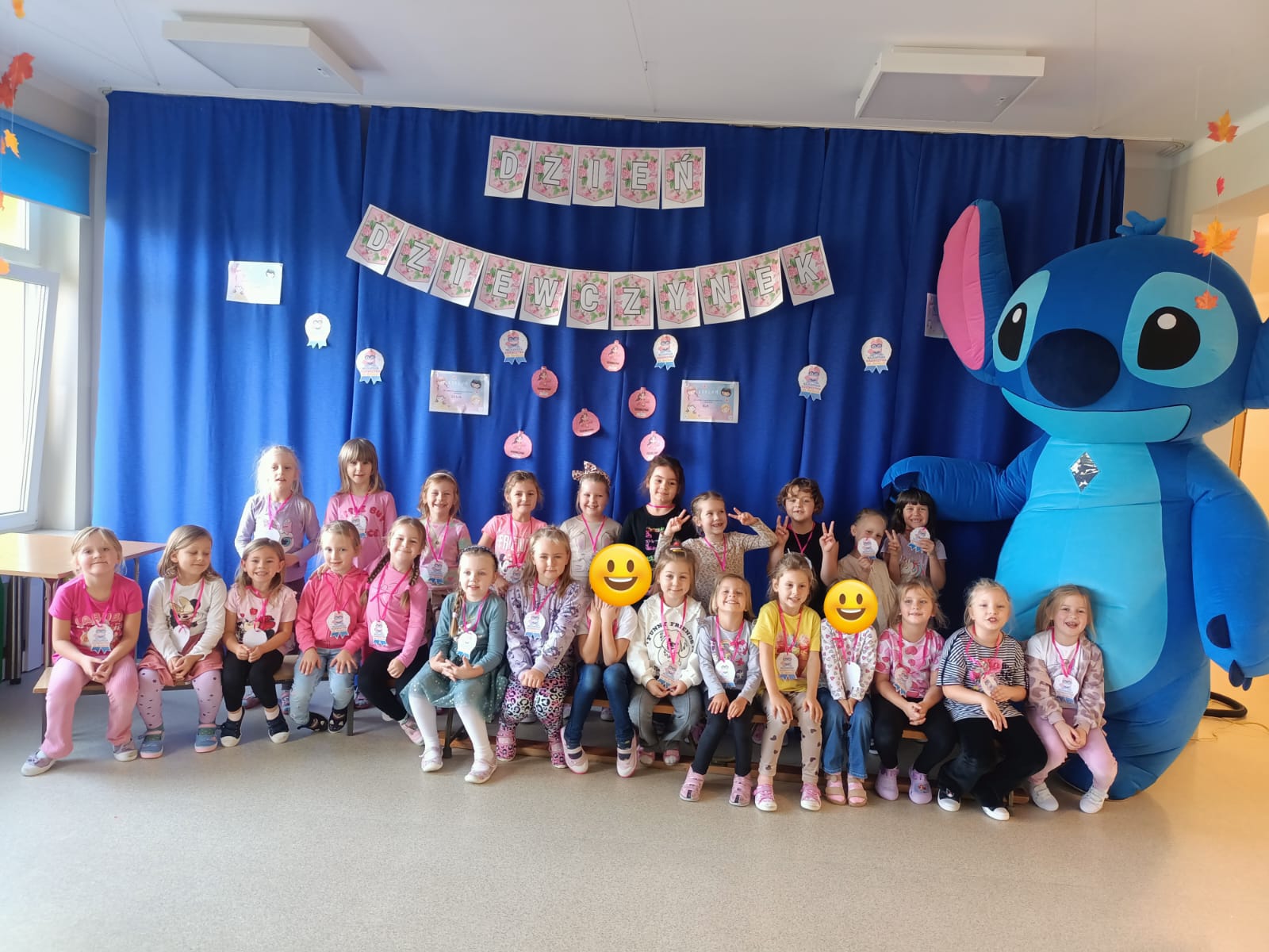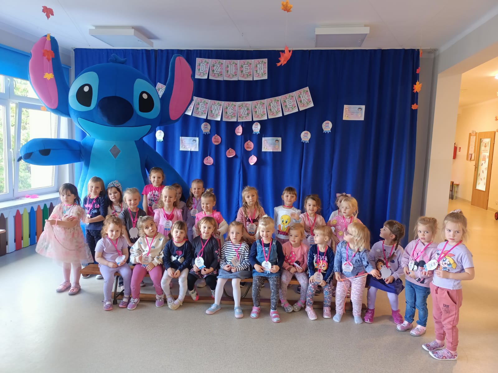 Z racji na Międzynarodowy Dzień Dziewczynek, który w tym roku wypadał w sobotę 11 października to w naszym przedszkolu w poniedziałek 13 października na dziewczynki czekały niespodzianki. Nasze świętowanie rozpoczęło się od „kina” czyli oglądania bajki jedząc popcorn. Następną atrakcją dla dziewczynek był specjalny gość – Stich. Dzieci miały możliwość wspaniale się bawić. Na zakończenie każda dziewczynka otrzymała swojego slima, którego mogła ozdabiać według własnego pomysłu oraz zabrać do swojego domu. Każda dziewczynka otrzymała medal, mus i batonik. Składamy serdeczne życzenia: spełnienia marzeń, radości, szczęścia, wspaniałych kolegów i koleżanek oraz uśmiechu na każdy dzień. Dziękujemy Mamie i Tacie Bianki z grupy Słoneczek, którzy zaangażowali się w Święto Dziewczynek.