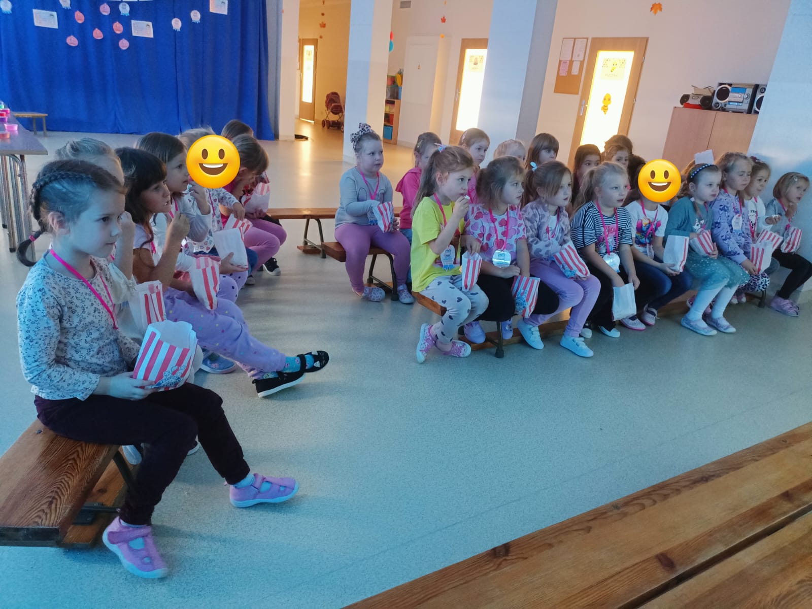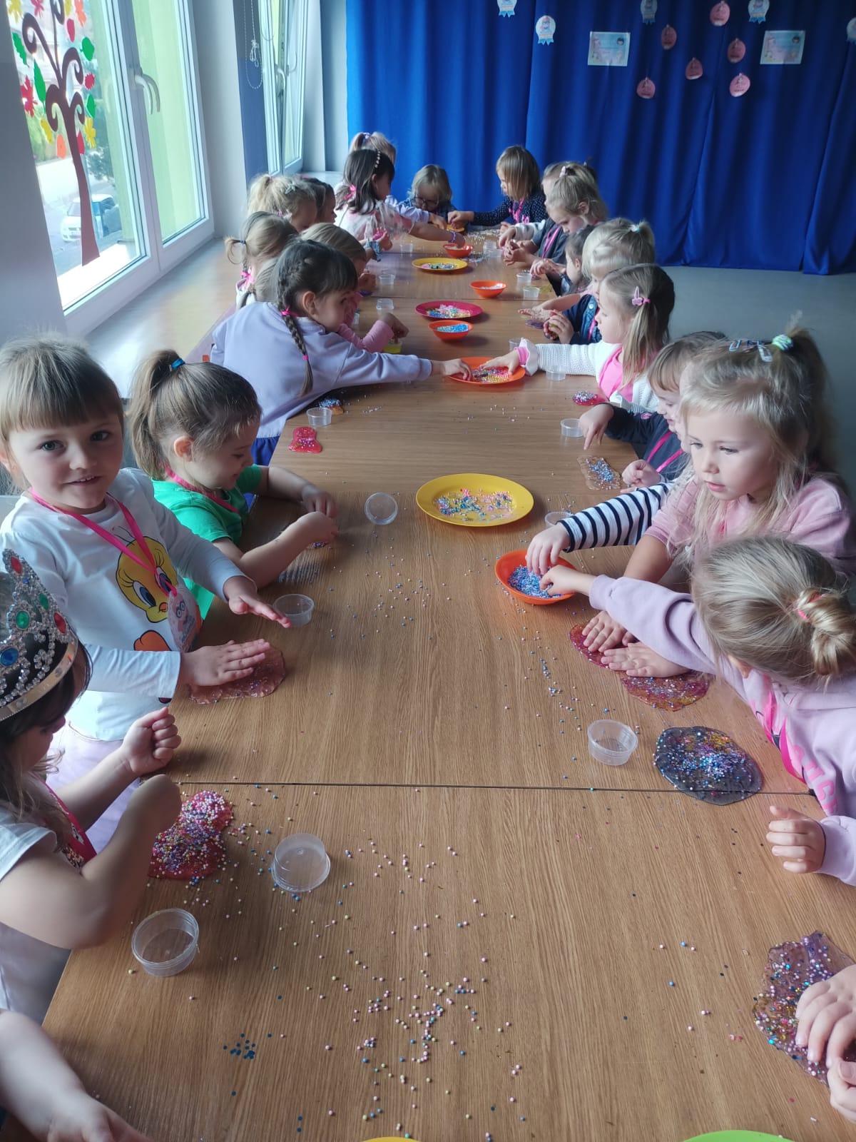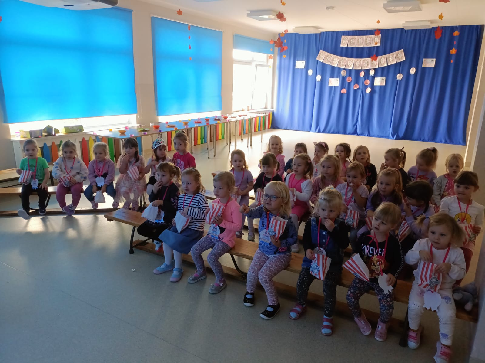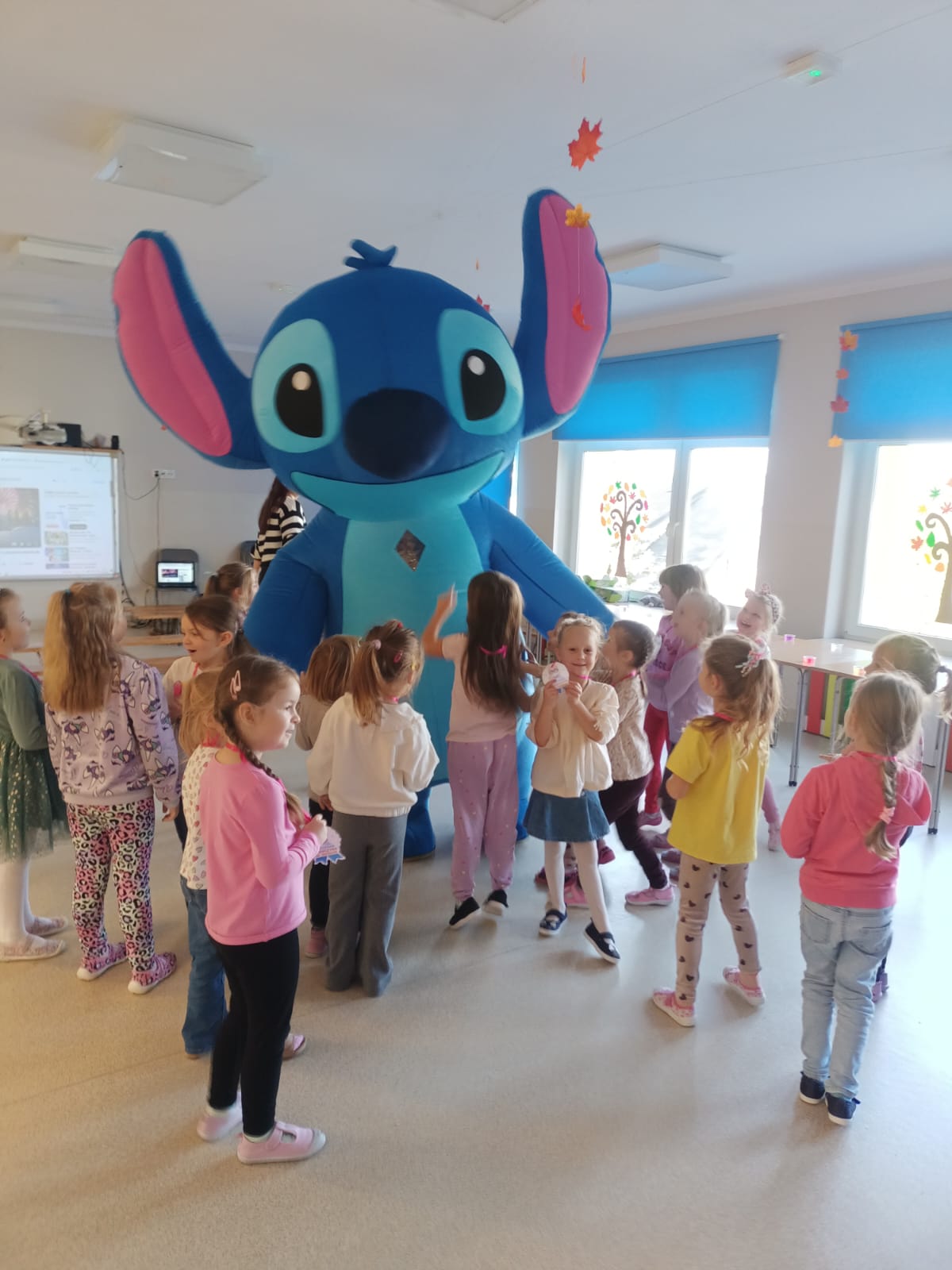 Z racji na Międzynarodowy Dzień Dziewczynek, który w tym roku wypadał w sobotę 11 października to w naszym przedszkolu w poniedziałek 13 października na dziewczynki czekały niespodzianki. Nasze świętowanie rozpoczęło się od „kina” czyli oglądania bajki jedząc popcorn. Następną atrakcją dla dziewczynek był specjalny gość – Stich. Dzieci miały możliwość wspaniale się bawić. Na zakończenie każda dziewczynka otrzymała swojego slima, którego mogła ozdabiać według własnego pomysłu oraz zabrać do swojego domu. Każda dziewczynka otrzymała medal, mus i batonik. Składamy serdeczne życzenia: spełnienia marzeń, radości, szczęścia, wspaniałych kolegów i koleżanek oraz uśmiechu na każdy dzień. Dziękujemy Mamie i Tacie Bianki z grupy Słoneczek, którzy zaangażowali się w Święto Dziewczynek.