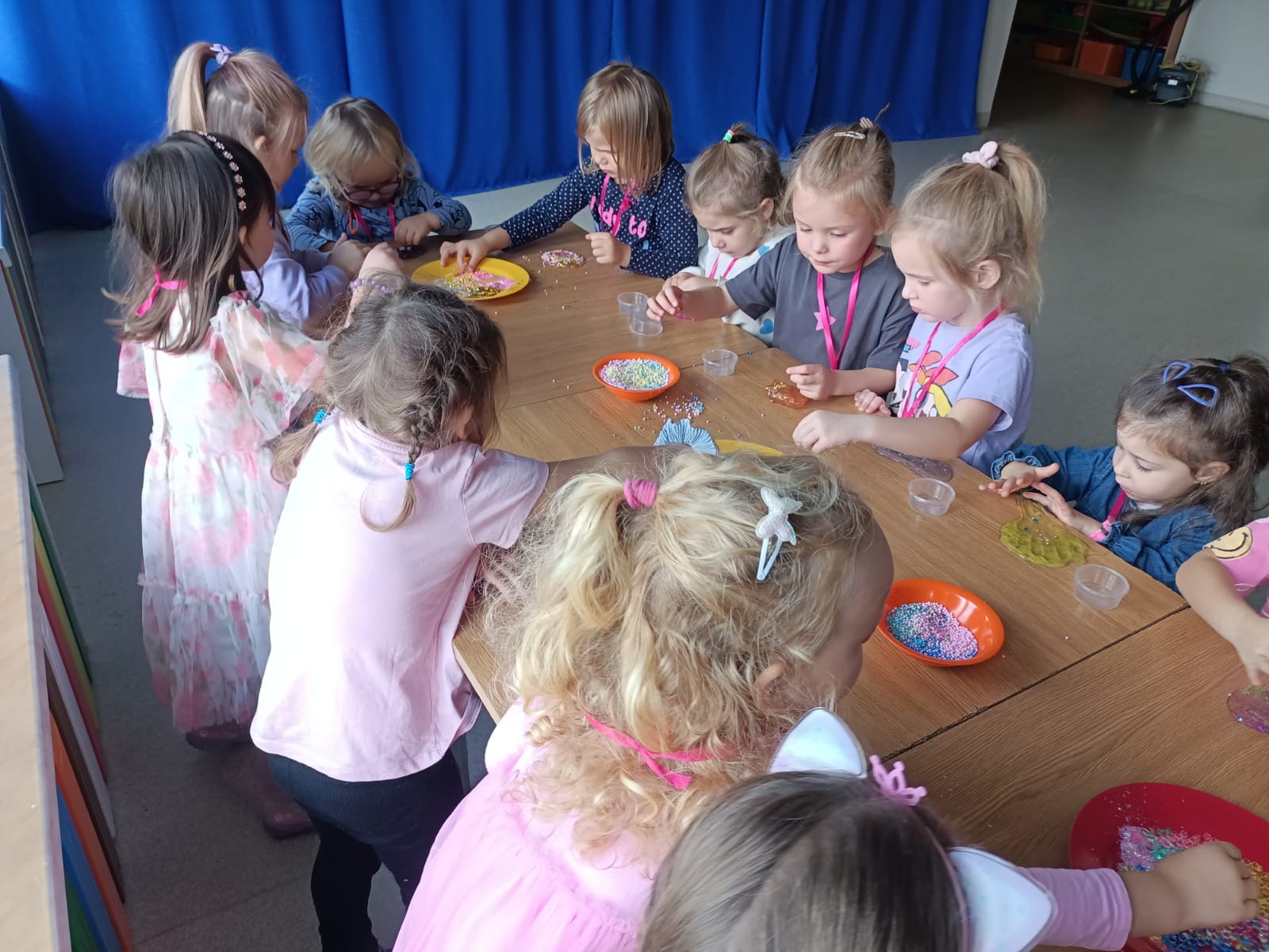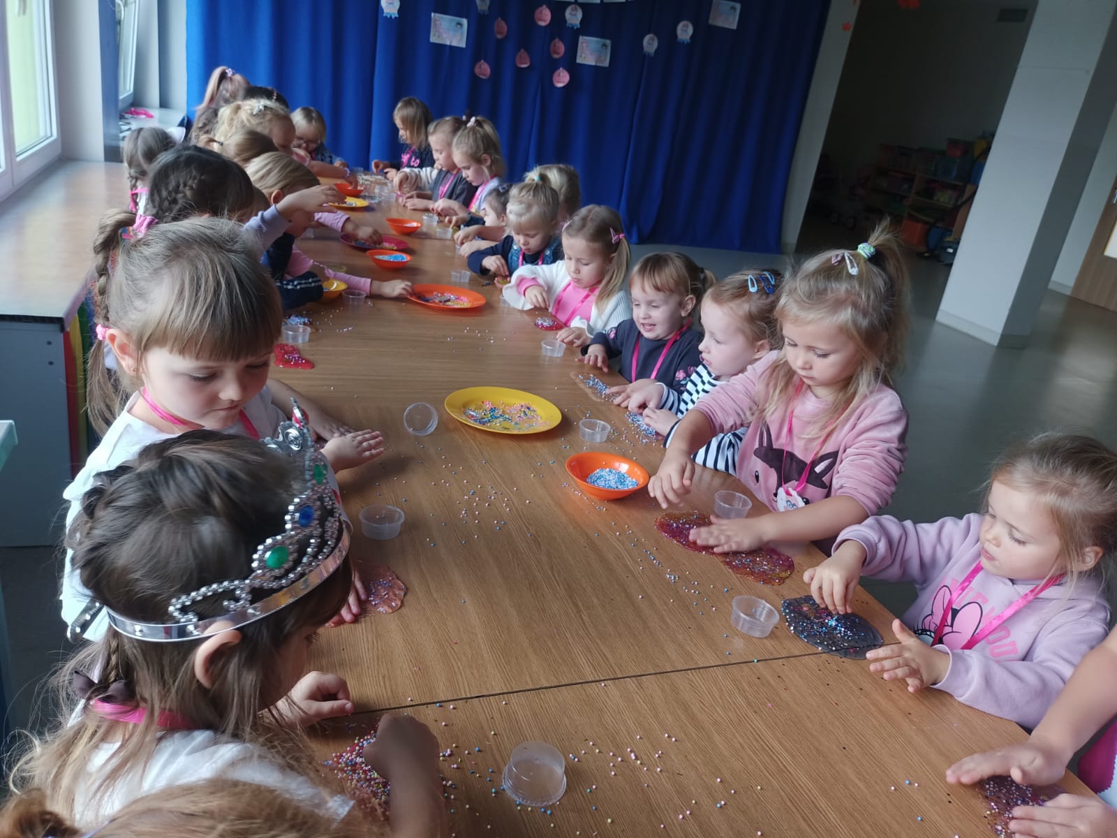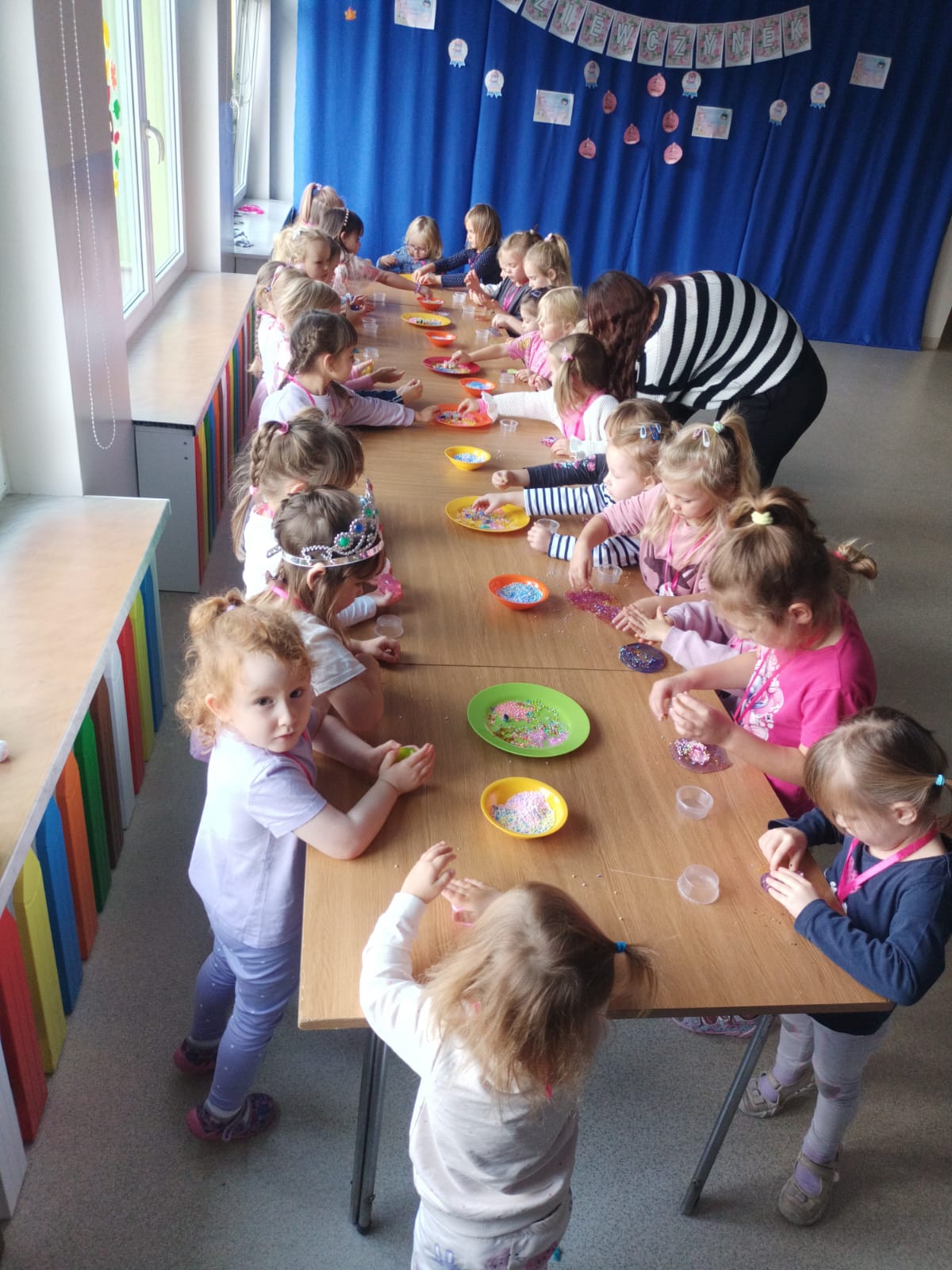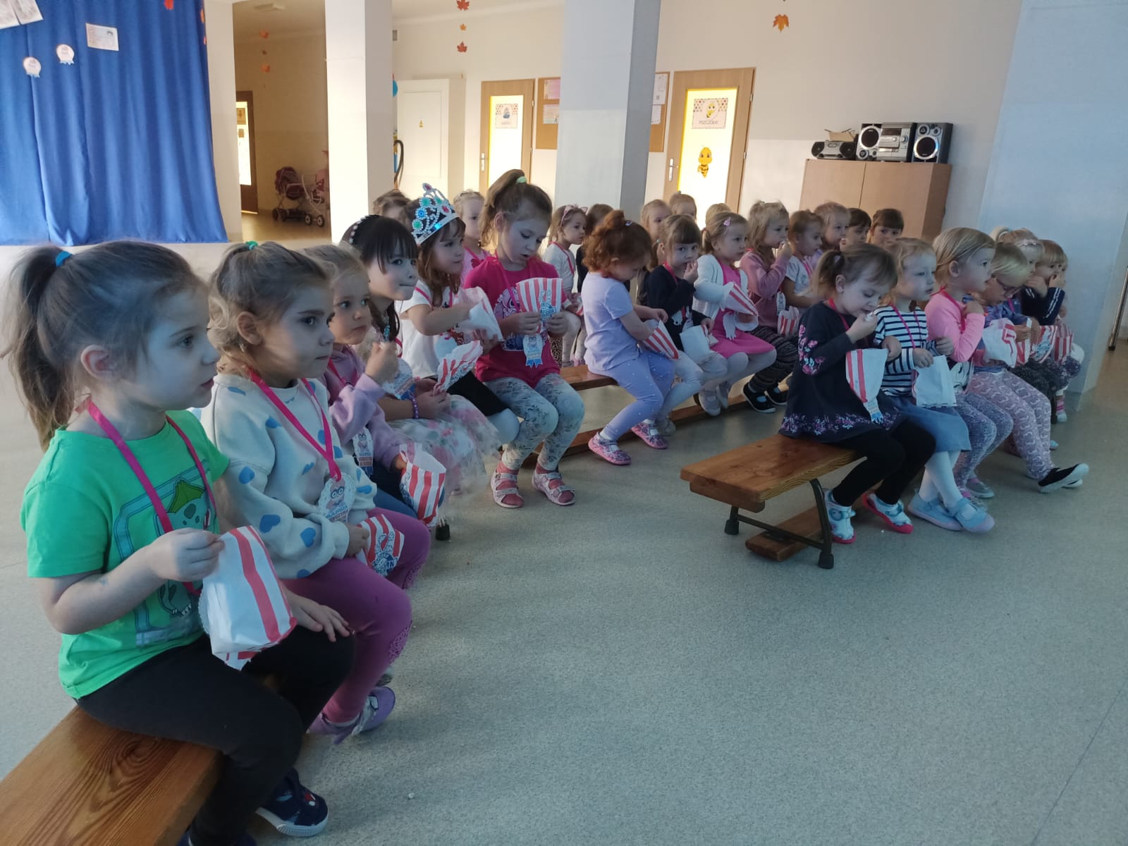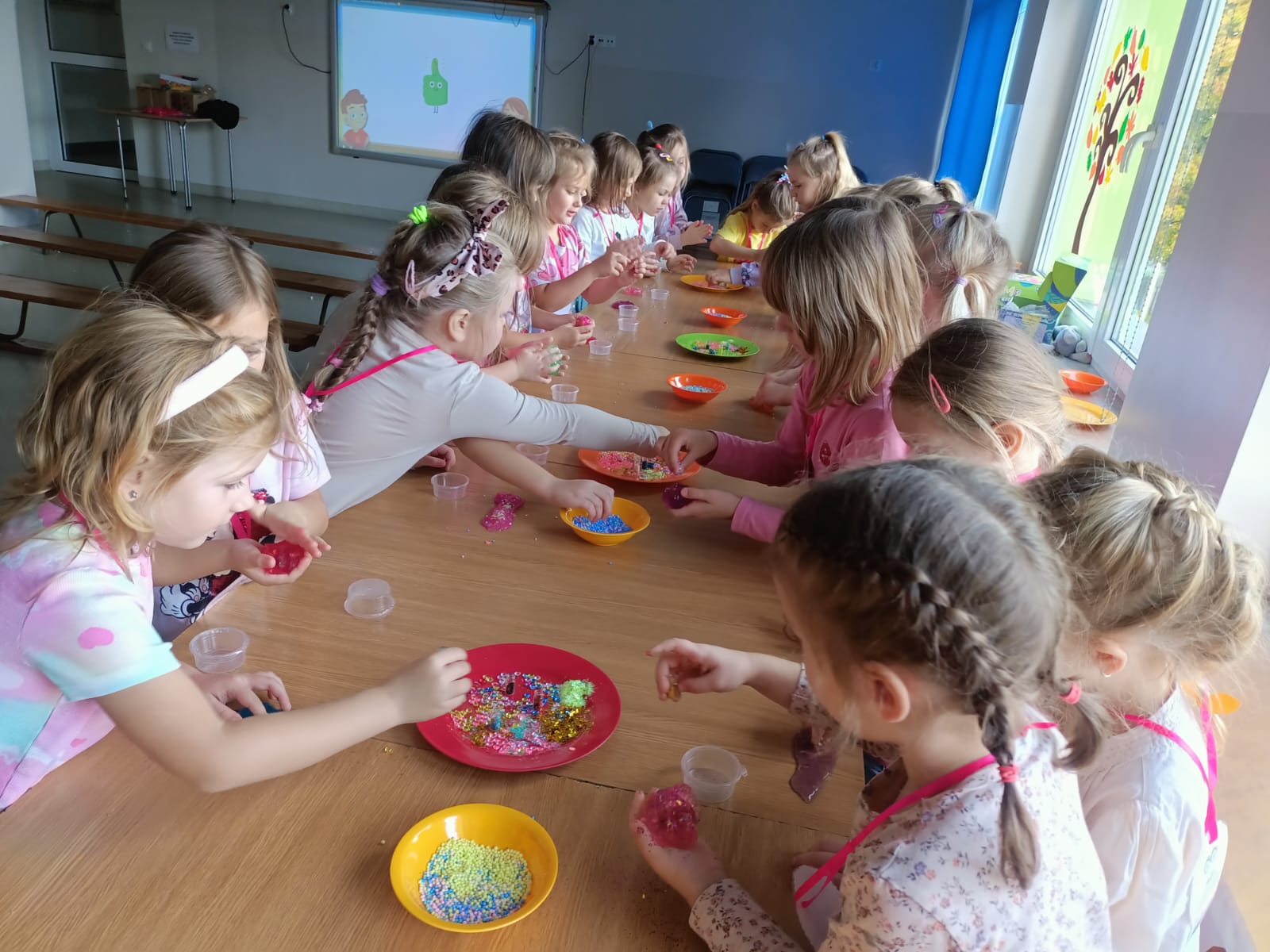 Z racji na Międzynarodowy Dzień Dziewczynek, który w tym roku wypadał w sobotę 11 października to w naszym przedszkolu w poniedziałek 13 października na dziewczynki czekały niespodzianki. Nasze świętowanie rozpoczęło się od „kina” czyli oglądania bajki jedząc popcorn. Następną atrakcją dla dziewczynek był specjalny gość – Stich. Dzieci miały możliwość wspaniale się bawić. Na zakończenie każda dziewczynka otrzymała swojego slima, którego mogła ozdabiać według własnego pomysłu oraz zabrać do swojego domu. Każda dziewczynka otrzymała medal, mus i batonik. Składamy serdeczne życzenia: spełnienia marzeń, radości, szczęścia, wspaniałych kolegów i koleżanek oraz uśmiechu na każdy dzień. Dziękujemy Mamie i Tacie Bianki z grupy Słoneczek, którzy zaangażowali się w Święto Dziewczynek.