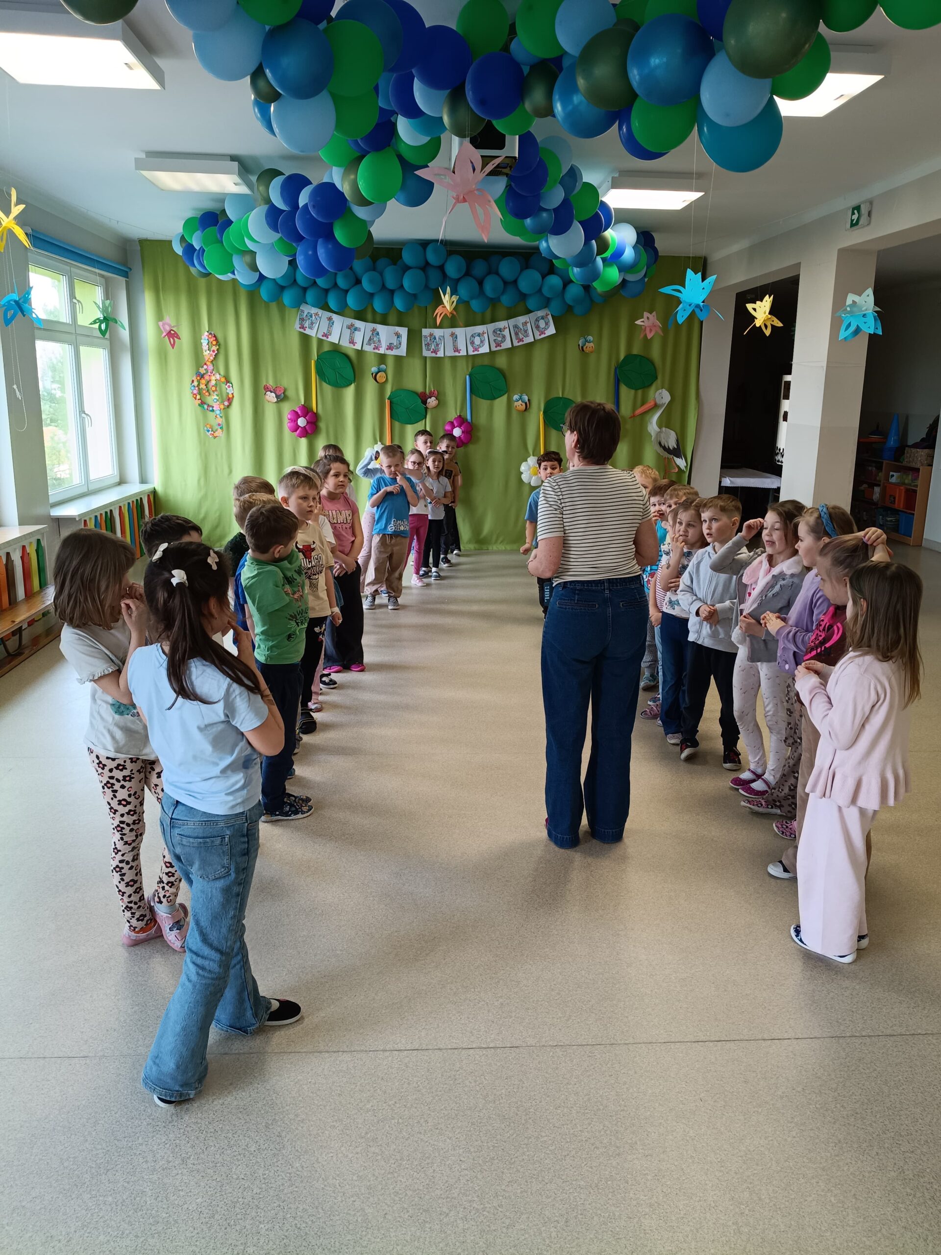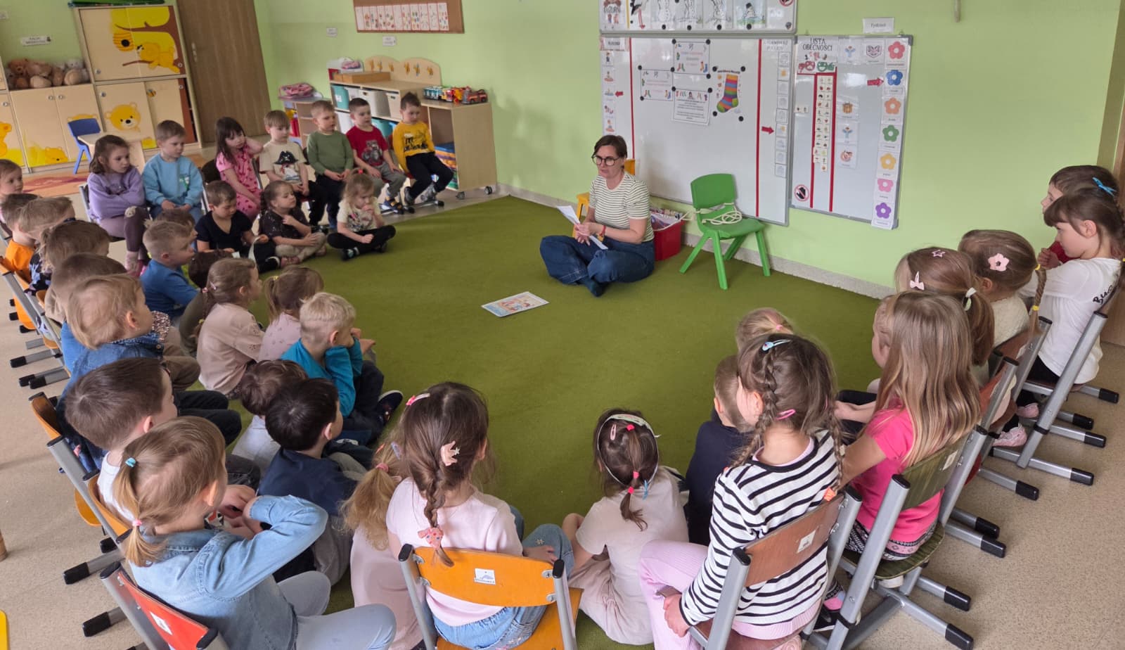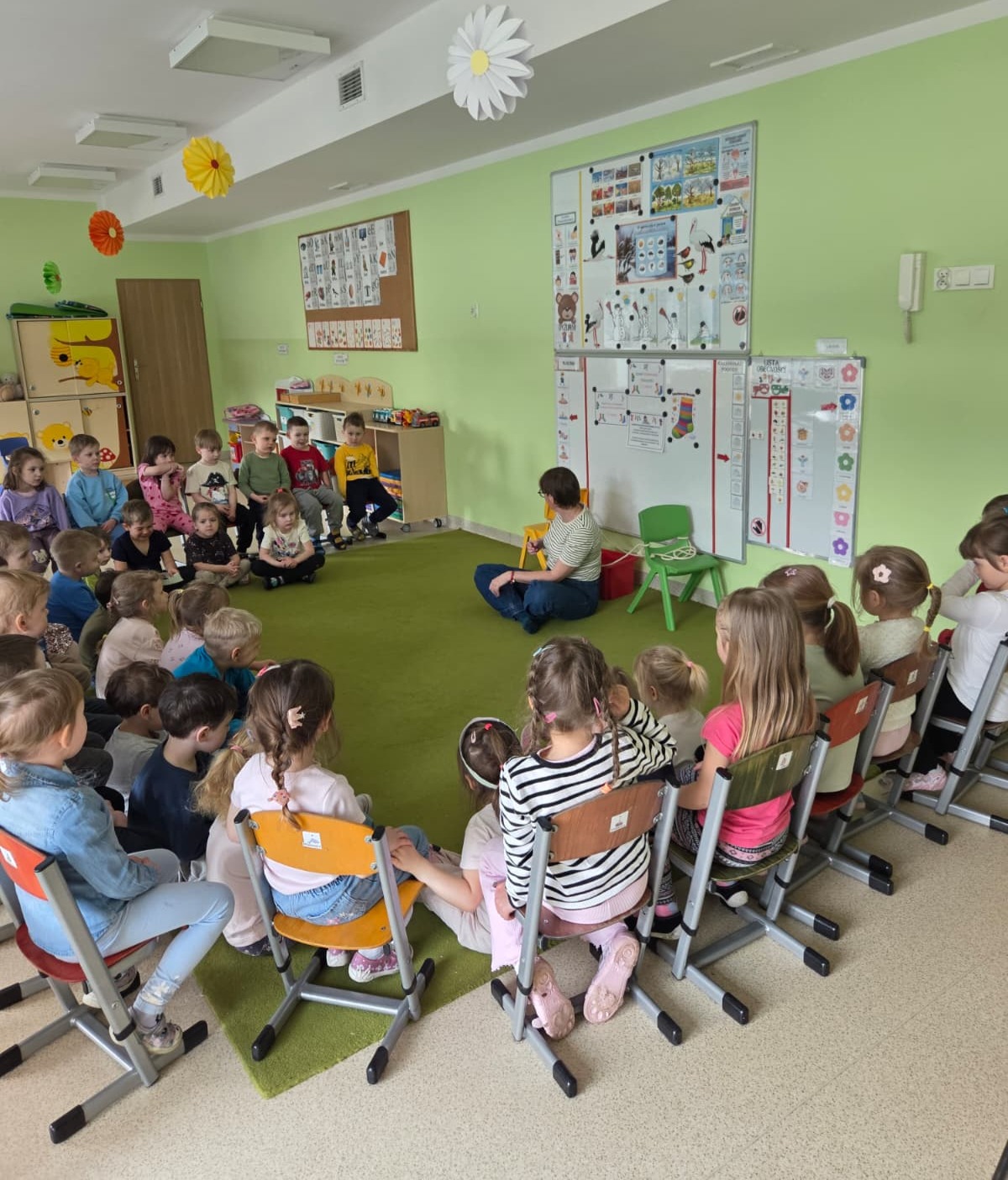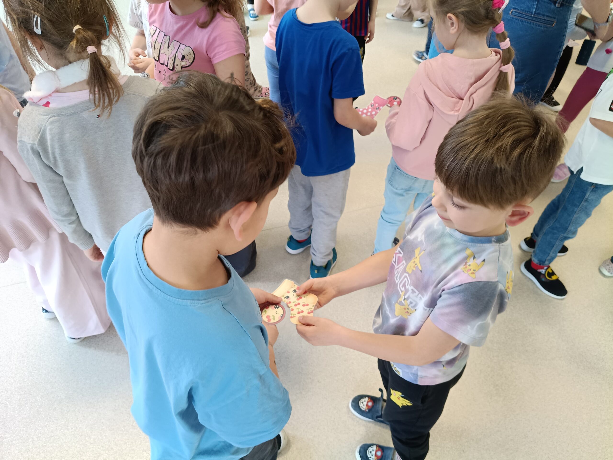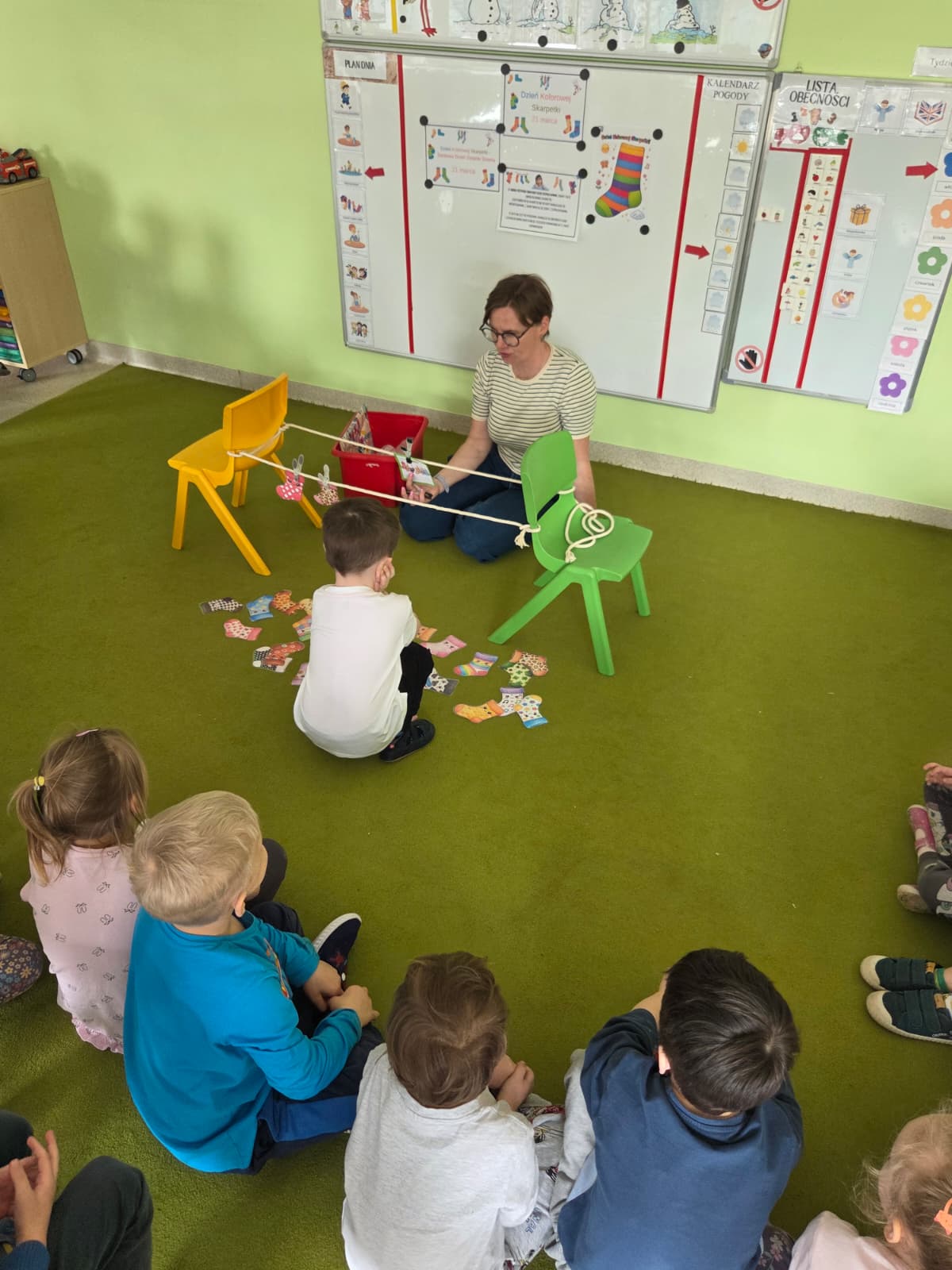 Dzieci oglądały i opowiadały o swoich kolorowych skarpetkach, uważnie wysłuchały co to jest za dzień i dlaczego jest obchodzony. Przedszkolaki wysłuchały bajki „Kolorowe skarpetki Janka” , bawiły się kolorami i skarpetkami dobierając je w pary i rozwieszając wg wzoru, a na koniec zajęć każdy ozdabiał skarpetkę wg własnego pomysłu.