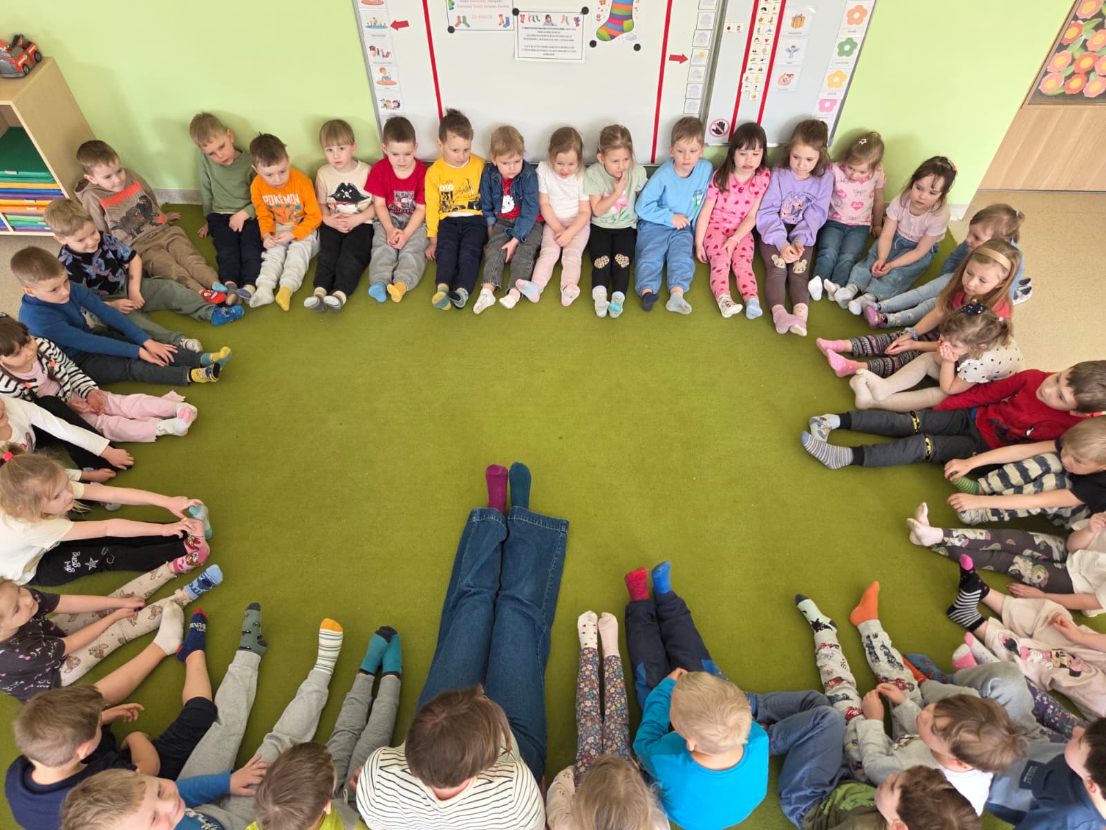 24 marca odbył się w naszym przedszkolu Dzień Kolorowej Skarpetki. Wszyscy tego dnia założyli kolorowe skarpetki na znak solidarności z osobami z Zespołem Downa.