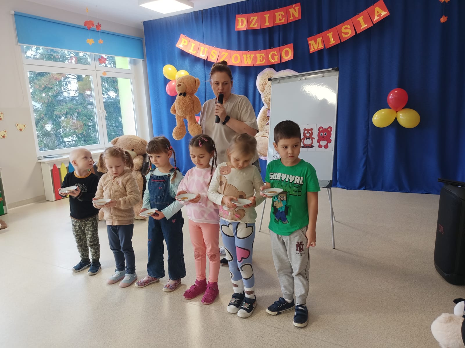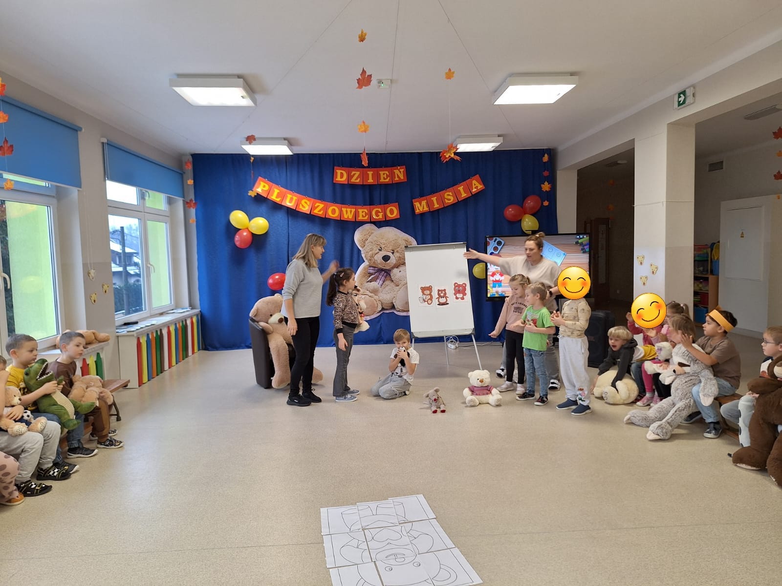 W trakcie dnia dzieci miały okazję zaprezentować swoje misie oraz wziąć udział w ciekawych zabawach sensoplastycznych, które rozwijały ich kreatywność i zmysły. Następnie odbyło się wspólne świętowanie, podczas którego wyświetlono film edukacyjny, z którego dzieci dowiedziały się, jak powstają ich ukochane pluszaki, jak również poznały wiele interesujących ciekawostek. Uśmiechów dostarczyły także misiowe konkurencje, taneczne zabawy oraz energiczna „misiowa gimnastyka”.