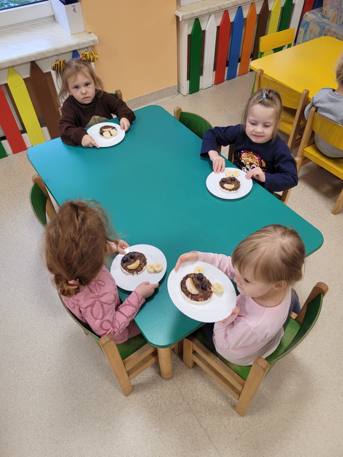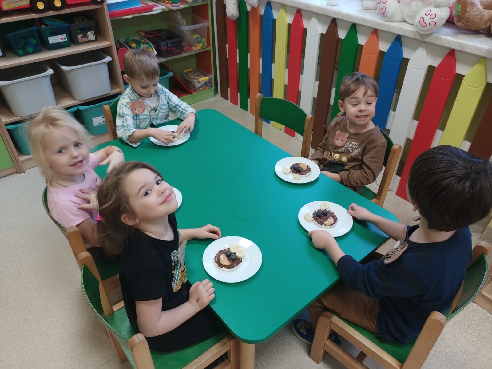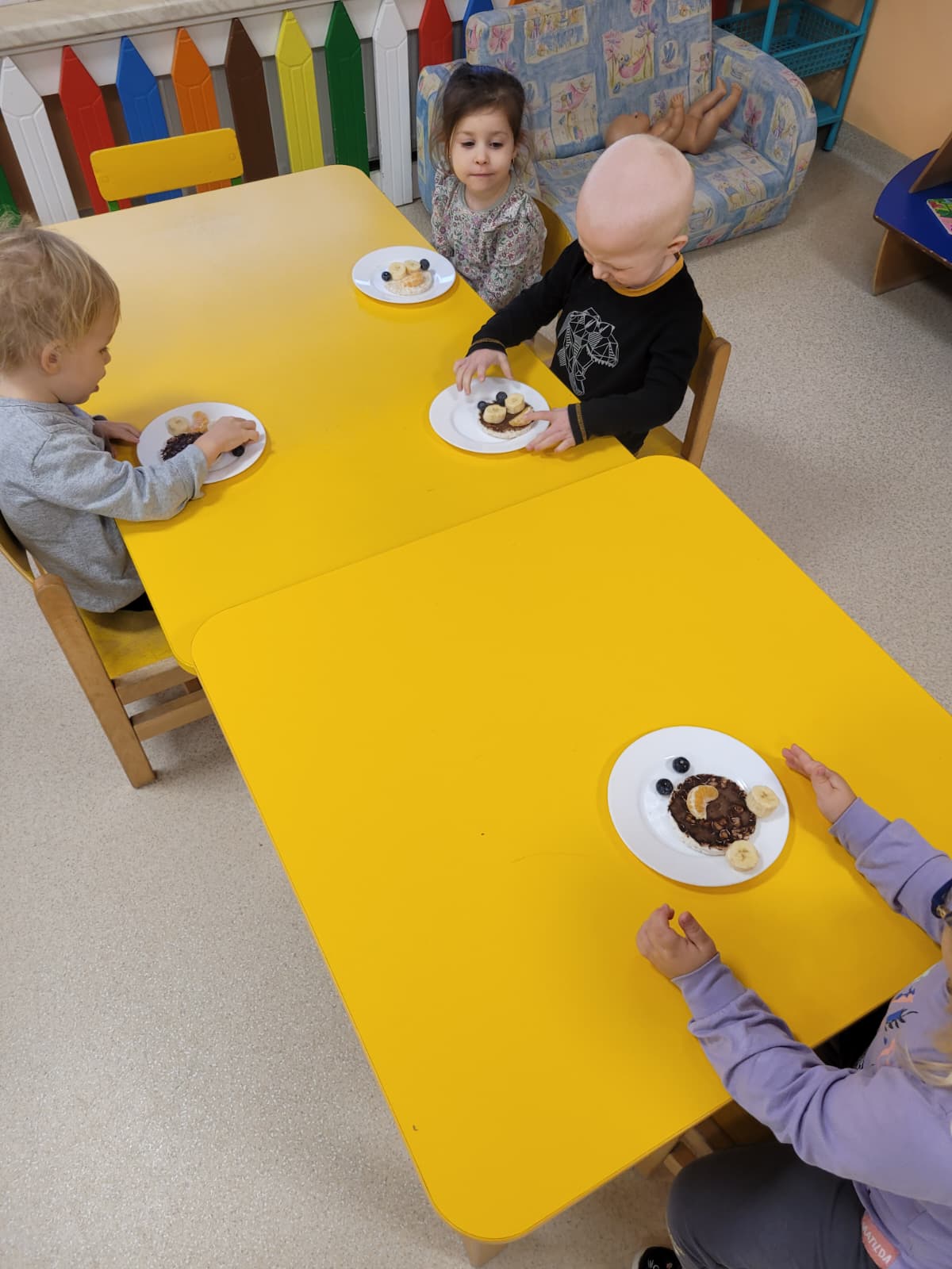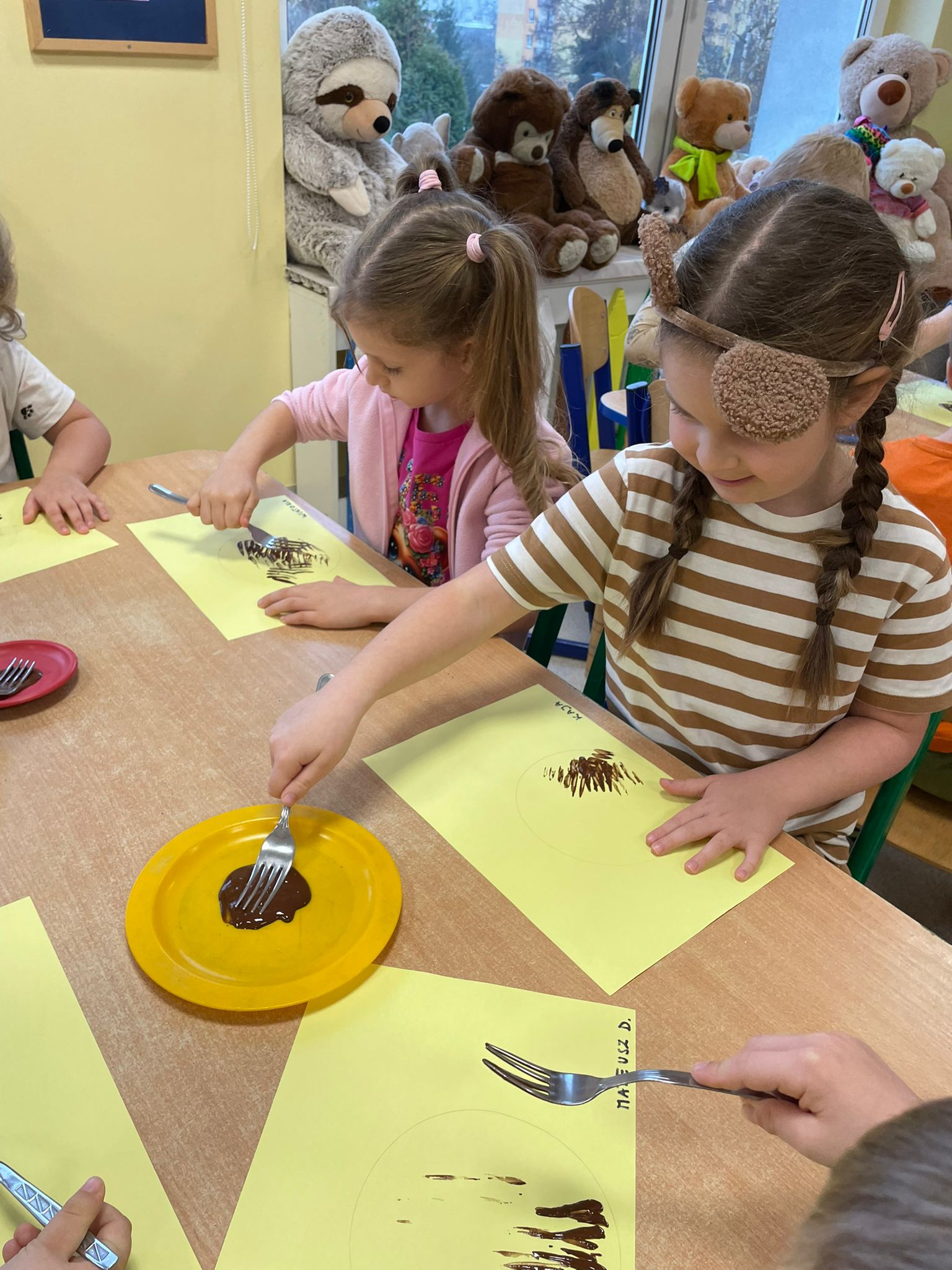 W rytmie piosenki wybrzmiało również „Sto lat” wszystkim „pluszakom”, bo to właśnie w tym dniu misie obchodzą swoje święto. Na zakończenie dzieci przygotowywały zdrową, misiową przekąskę, ozdabiając ją oczkami, uszkami i uśmiechem.