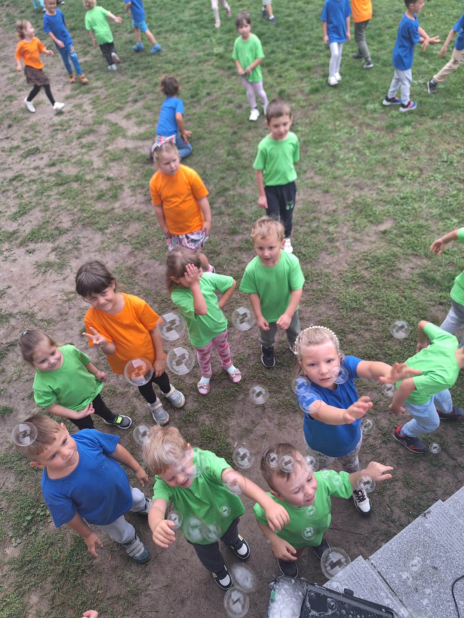 Na wszystkie dzieci czekało mnóstwo atrakcji:  zabawy z muzyką, kolorowe bańki mydlane, sportowe wyzwania podczas zajęć „Kangurek”, a po sportowych rozgrywkach – poczęstunek oraz pyszne lody. Rodzice mogli też skorzystać z fotobudki, w której każdy przedszkolak mógł zrobić sobie pamiątkowe zdjęcie! To były dwa dni pełne śmiechu, zabawy i wspólnego świętowania. Dziękujemy wszystkim dzieciom za fantastyczną energię!