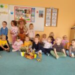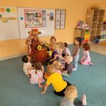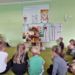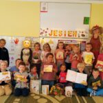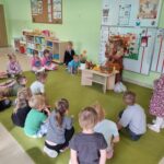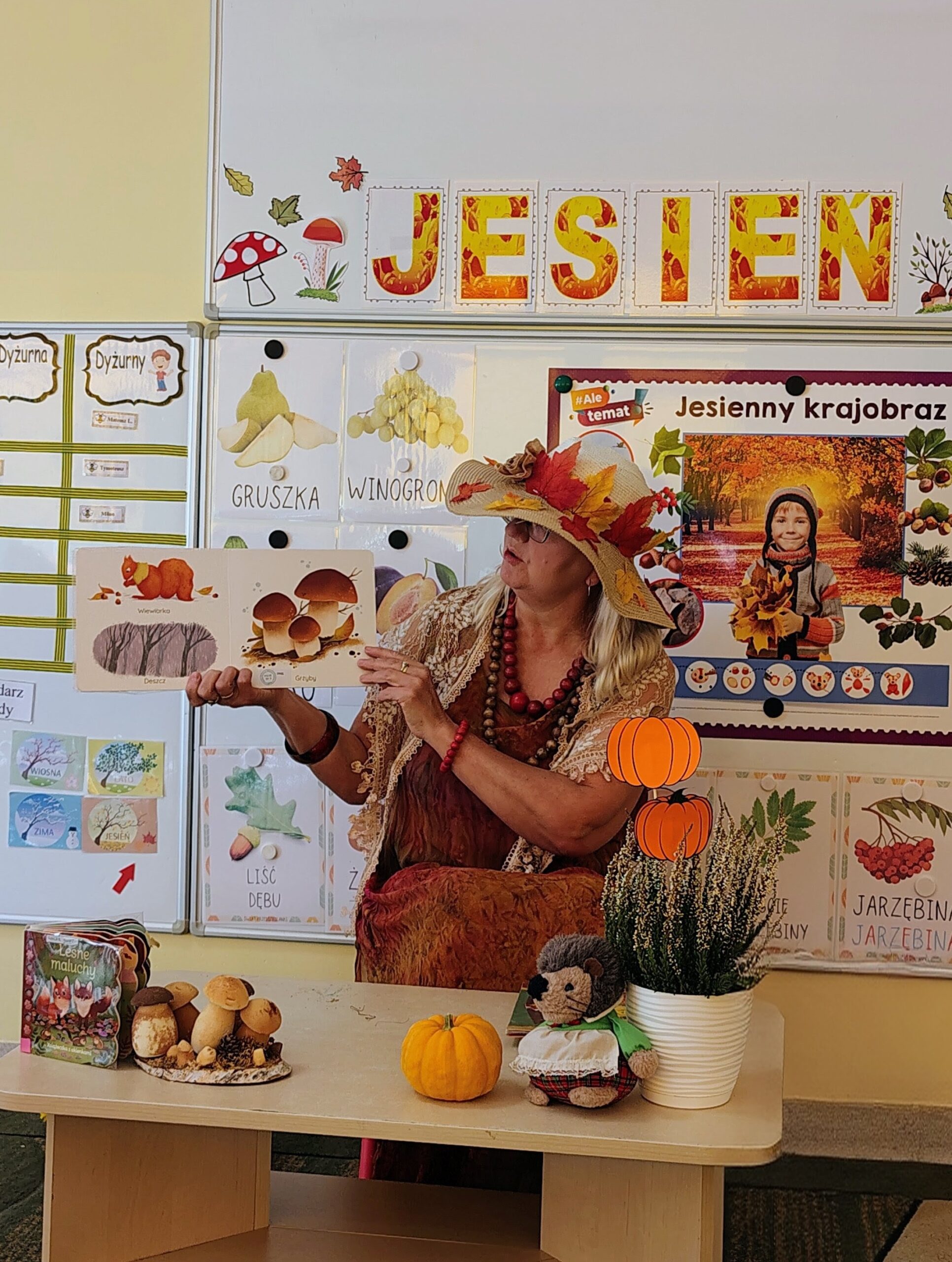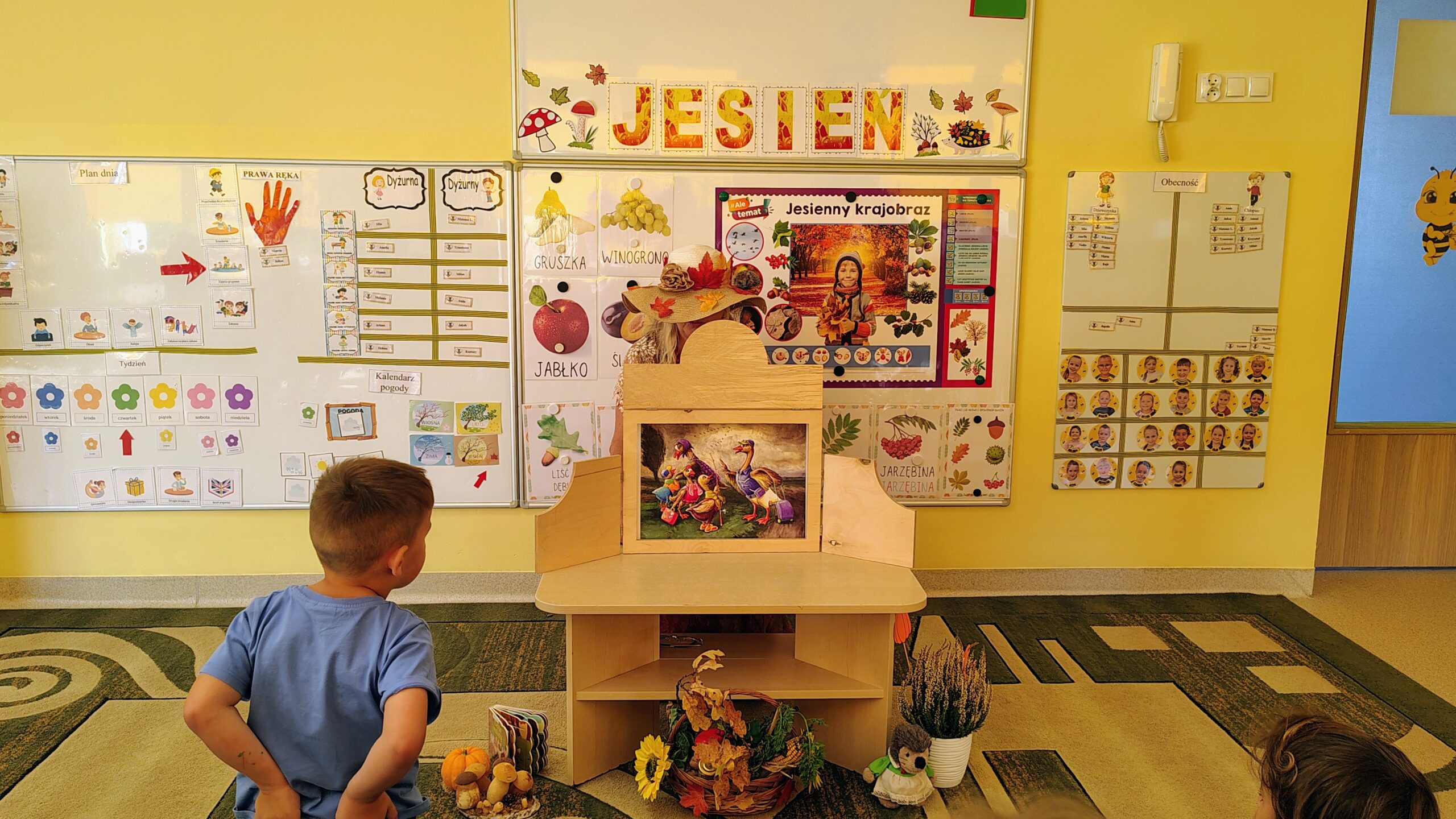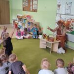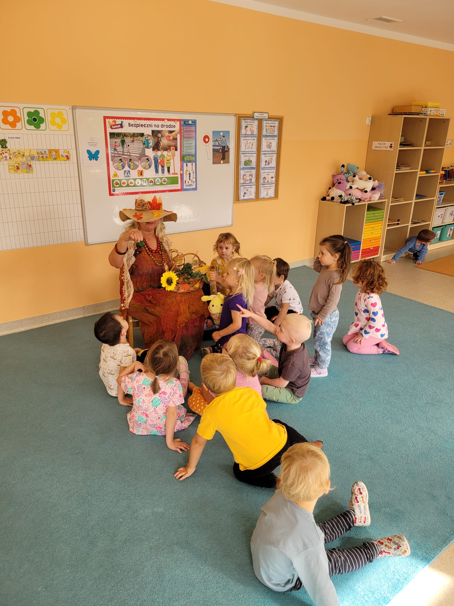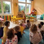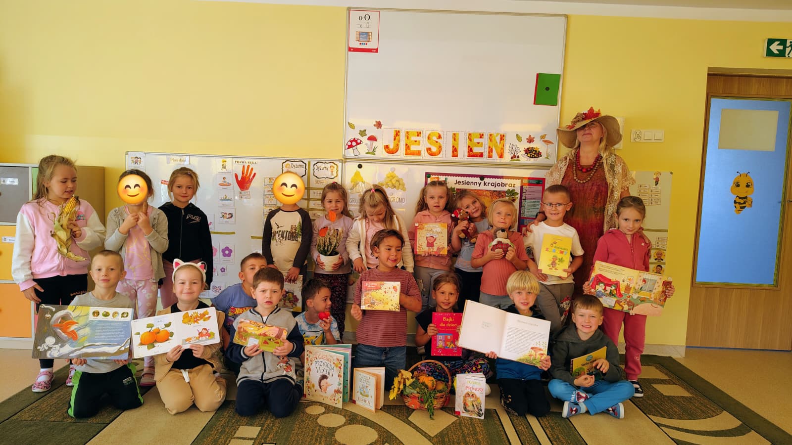 W naszym przedszkolu gościliśmy Panią Asię z biblioteki, która zaprosiła dzieci do wspólnego powitania Pani Jesieni. Przedszkolaki rozmawiały o oznakach nowej pory roku, poznały jesienne dary, a na zakończenie z zaciekawieniem obejrzały teatrzyk przygotowany specjalnie na tę okazję.
