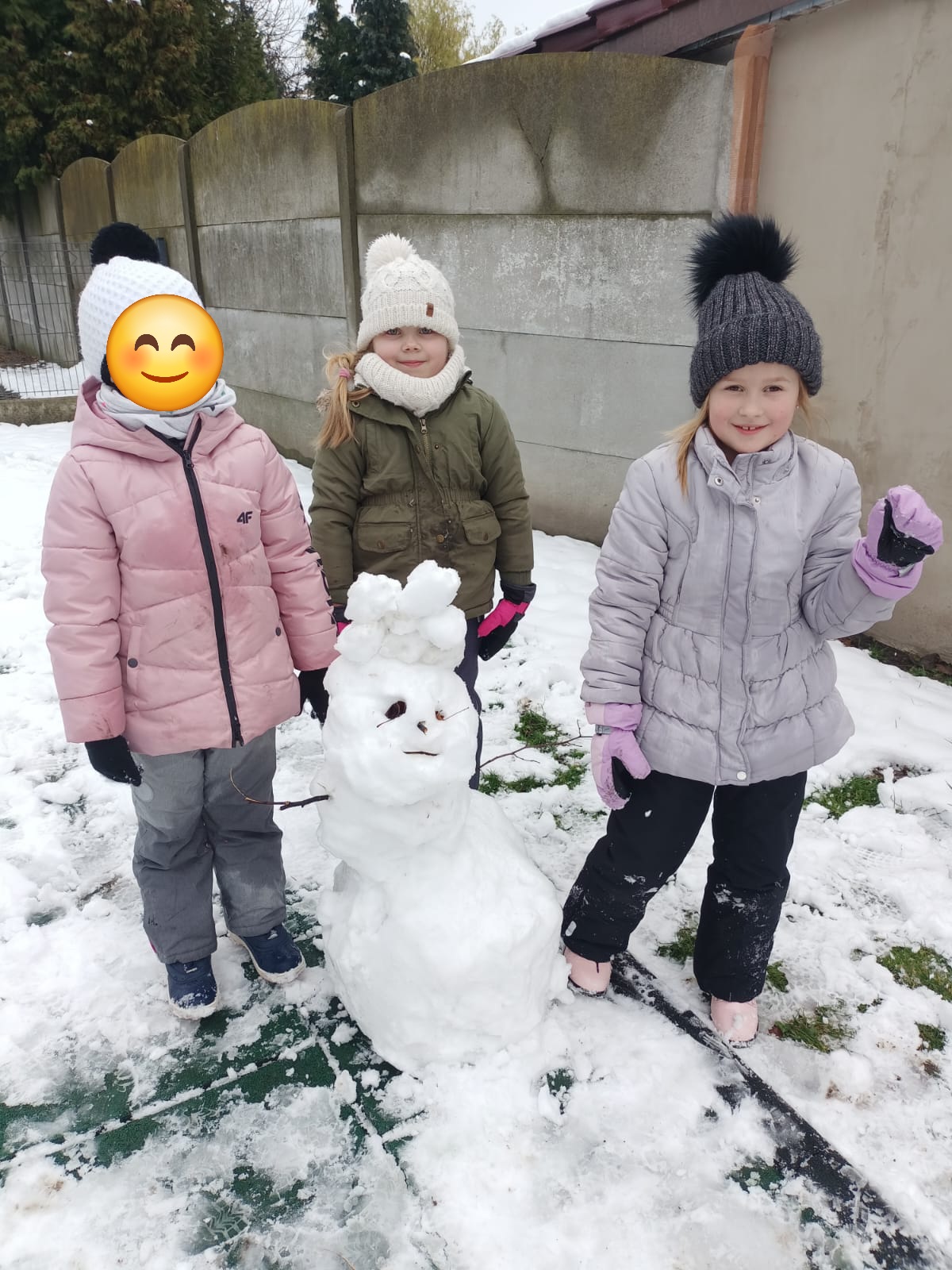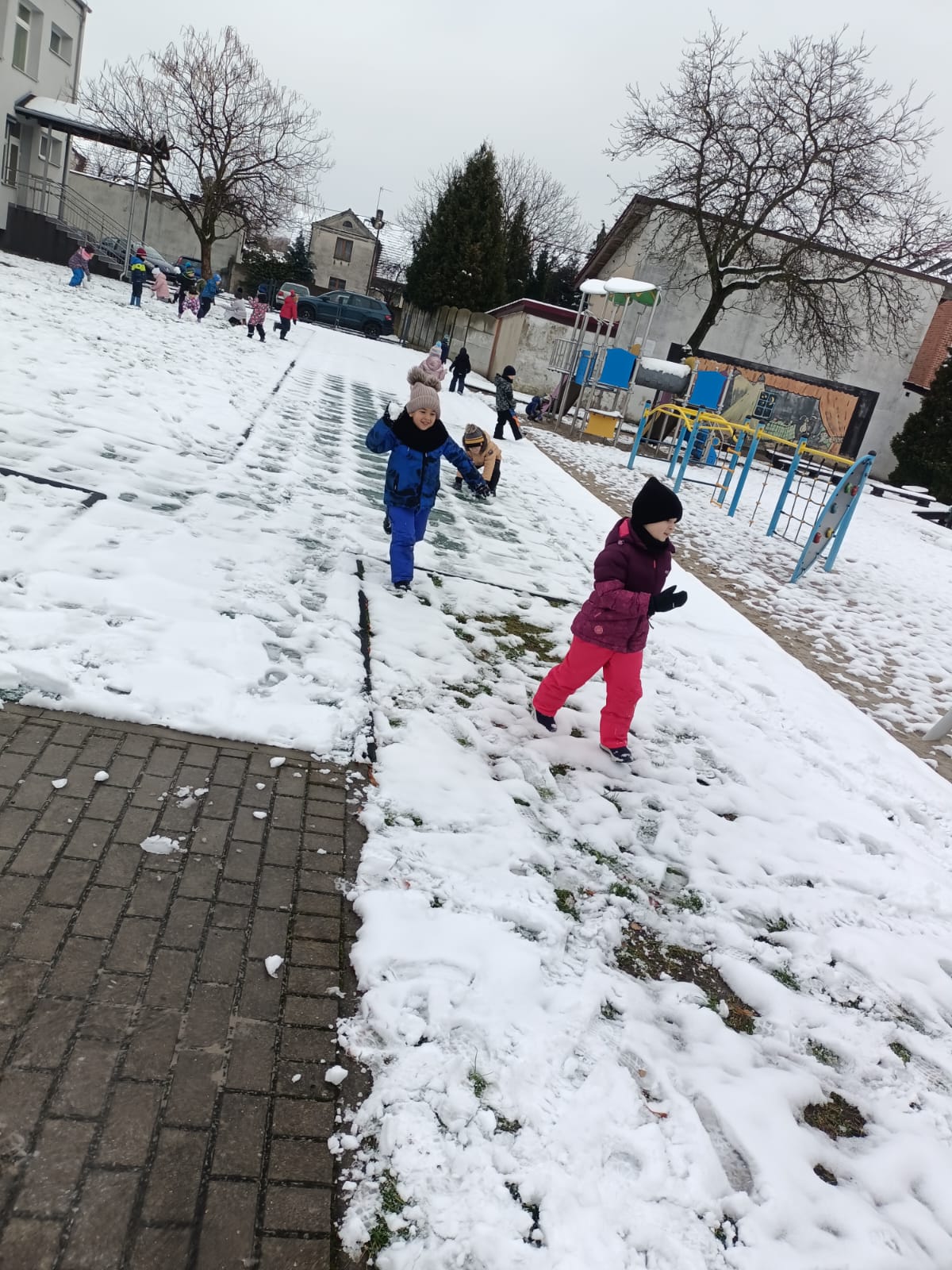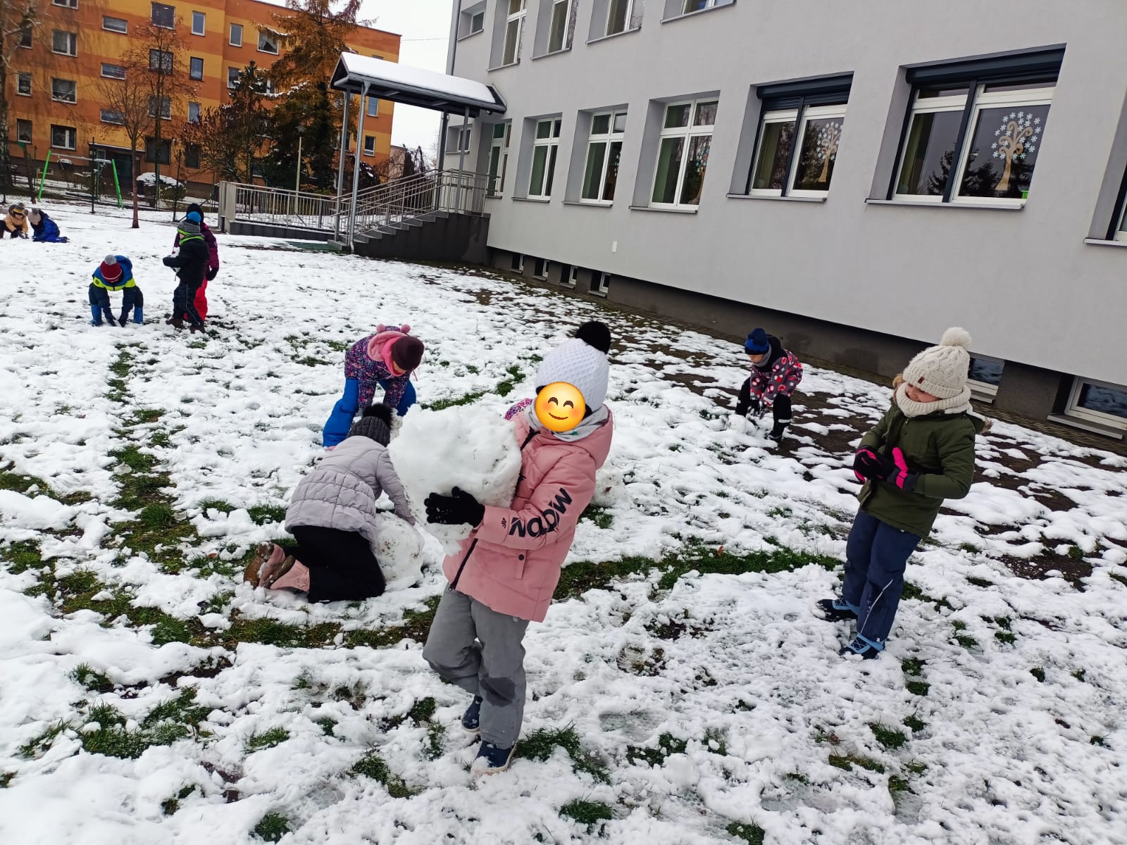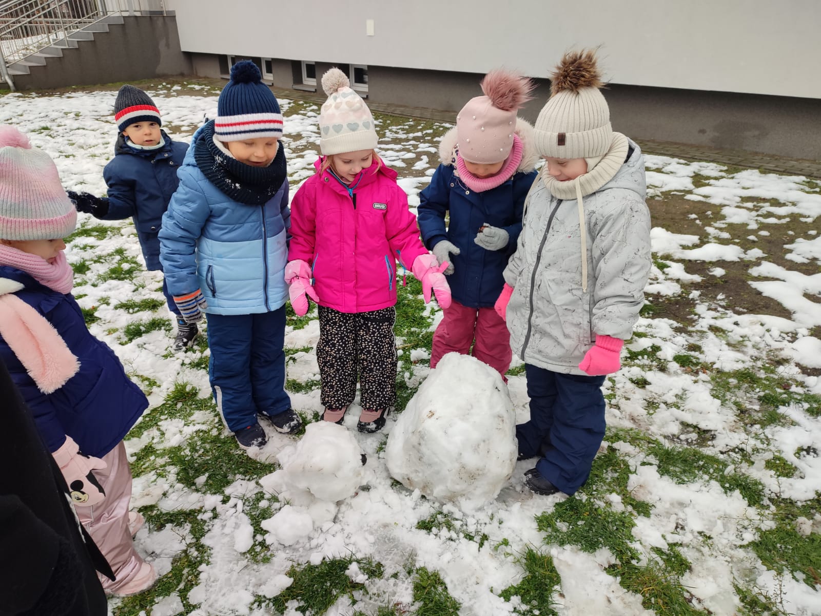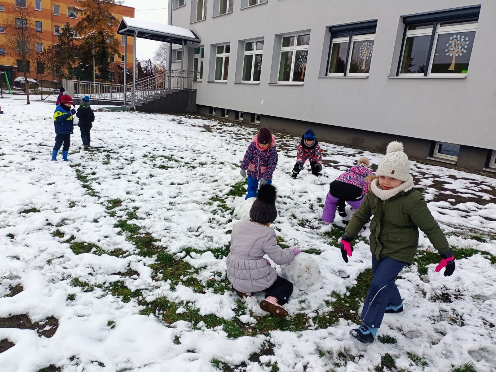 Dzieci z grup „Pszczółki” i „Słoneczka” z radością wyszły na przedszkolny plac zabaw, aby korzystać z uroków pierwszego śniegu. Maluchy z entuzjazmem biegały, lepiły małe bałwanki i obserwowały zimowe zmiany w otoczeniu. Pierwszy śnieg przyniósł im mnóstwo uśmiechu i świetnej zabawy na świeżym powietrzu.