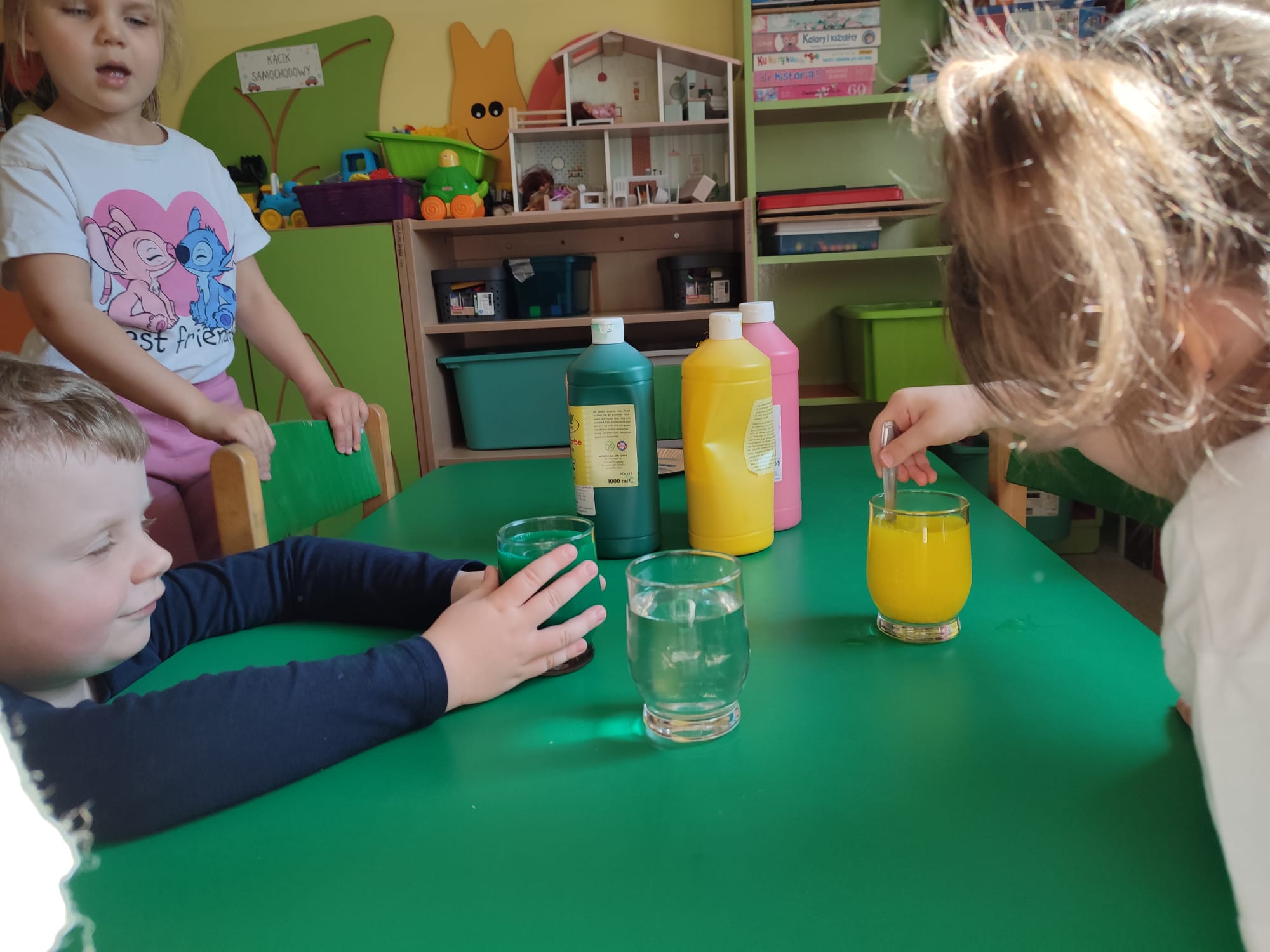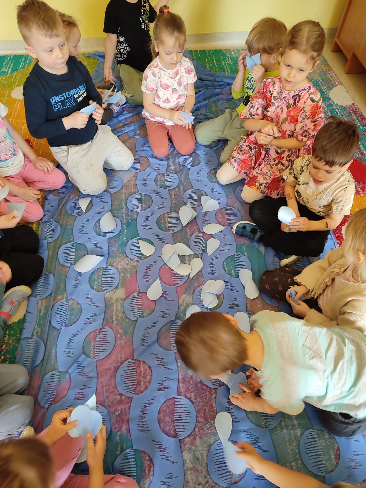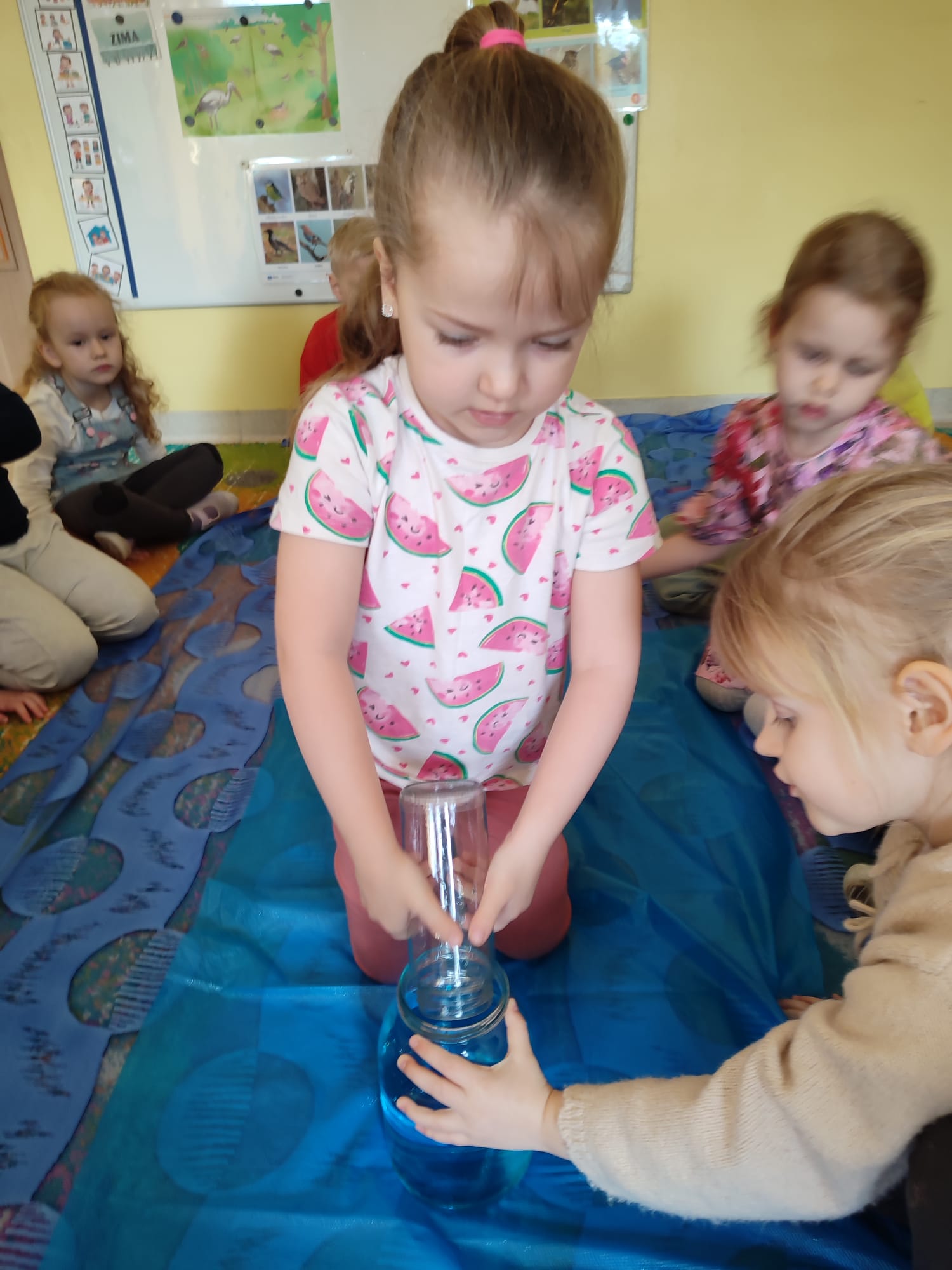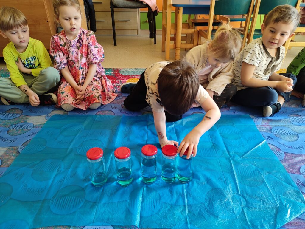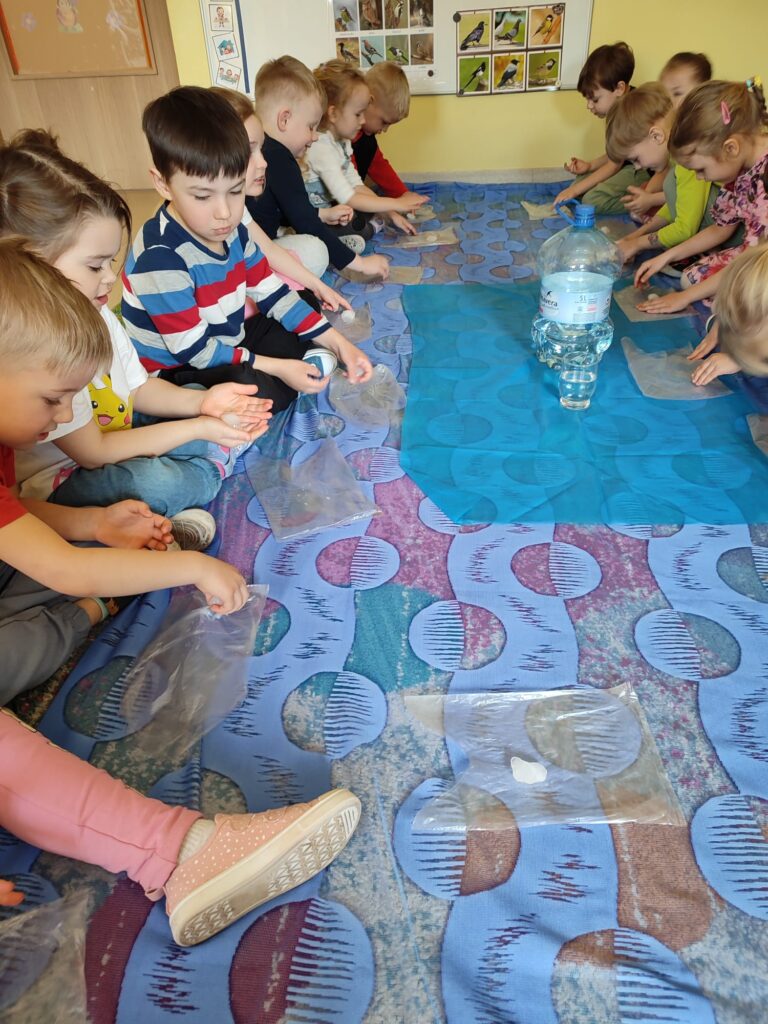 23 marca dzieci z grupy „Słoneczka” obchodziły „Dzień Wody”. Dzień ten miał na celu uświadomienie znaczenia wody dla życia i zdrowia ludzi, zwierząt i roślin. Dzieci brały udział w zabawach: badawczych (“Jaka jest woda?”, “Co pływa, a co tonie?”, “Co się rozpuści w wodzie?”, “Wędrująca woda”), umysłowych (pogadanka na podstawie opowiadania, zagadki, burza mózgów, liczenie papierowych kropelek), a także muzycznych (wsłuchiwanie się w odgłosy wody i odgadywanie poszczególnych dźwięków). Największym zainteresowaniem cieszyły się eksperymenty . Dzieci zadeklarowały, że będą oszczędzać wodę zarówno w domu jak i w przedszkolu. (Dodały również, że muszą “pilnować” rodziców, aby oszczędzali wodę 🙂) Na zakończenie przedszkolaki wykonały pracę plastyczną “Kropelka”.